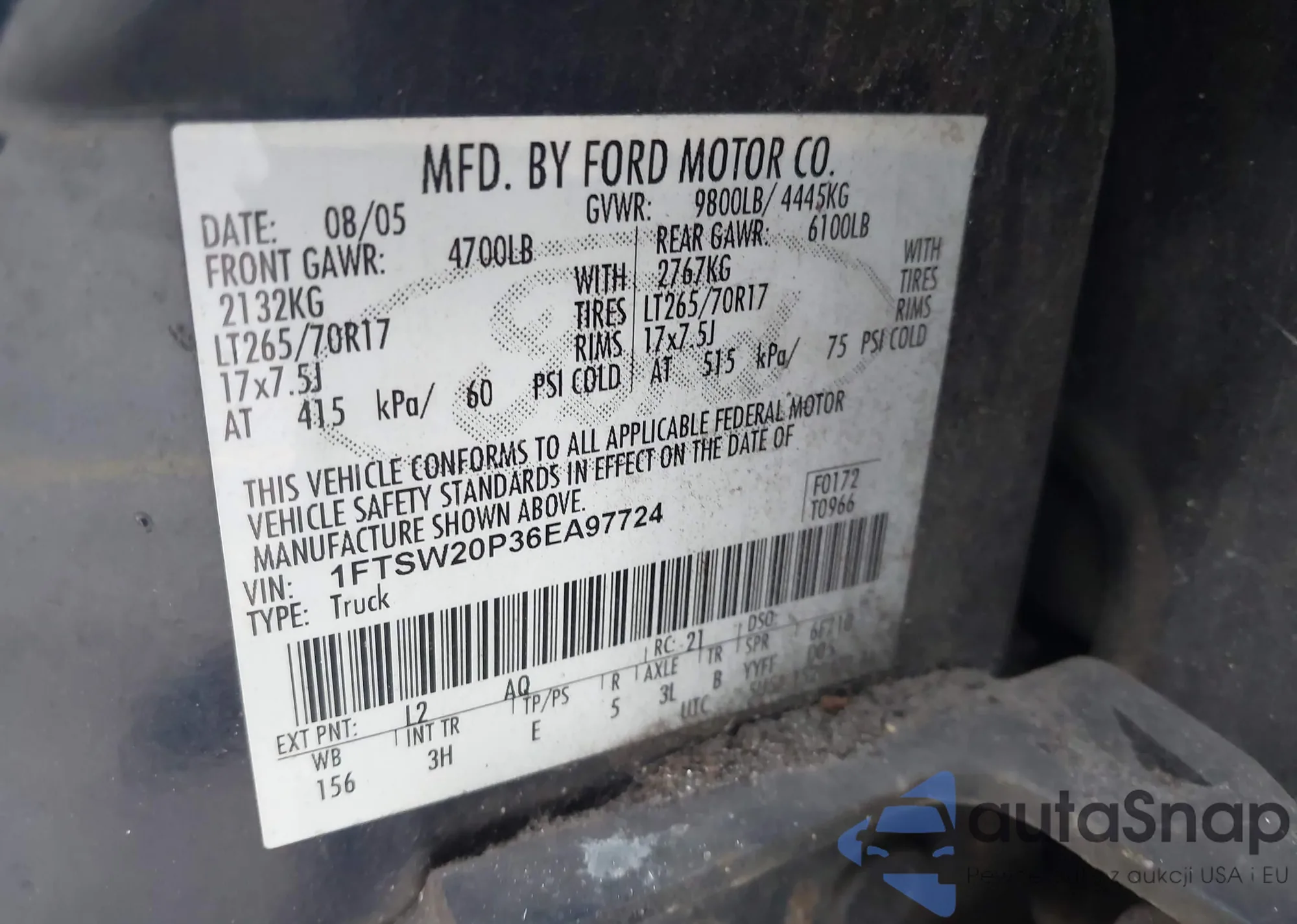 VIN: 1FTSW20P36EA97724