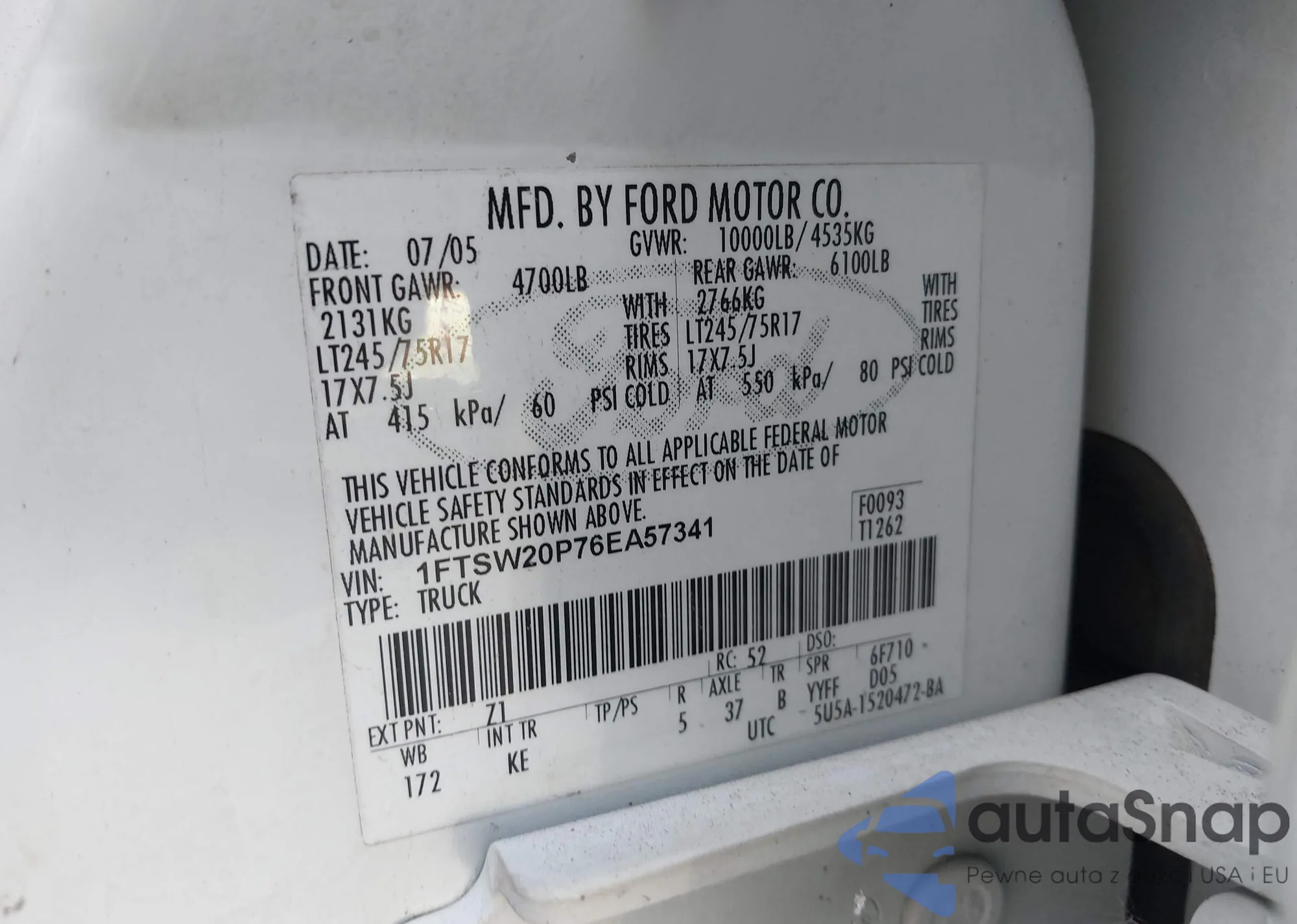 VIN: 1FTSW20P76EA57341