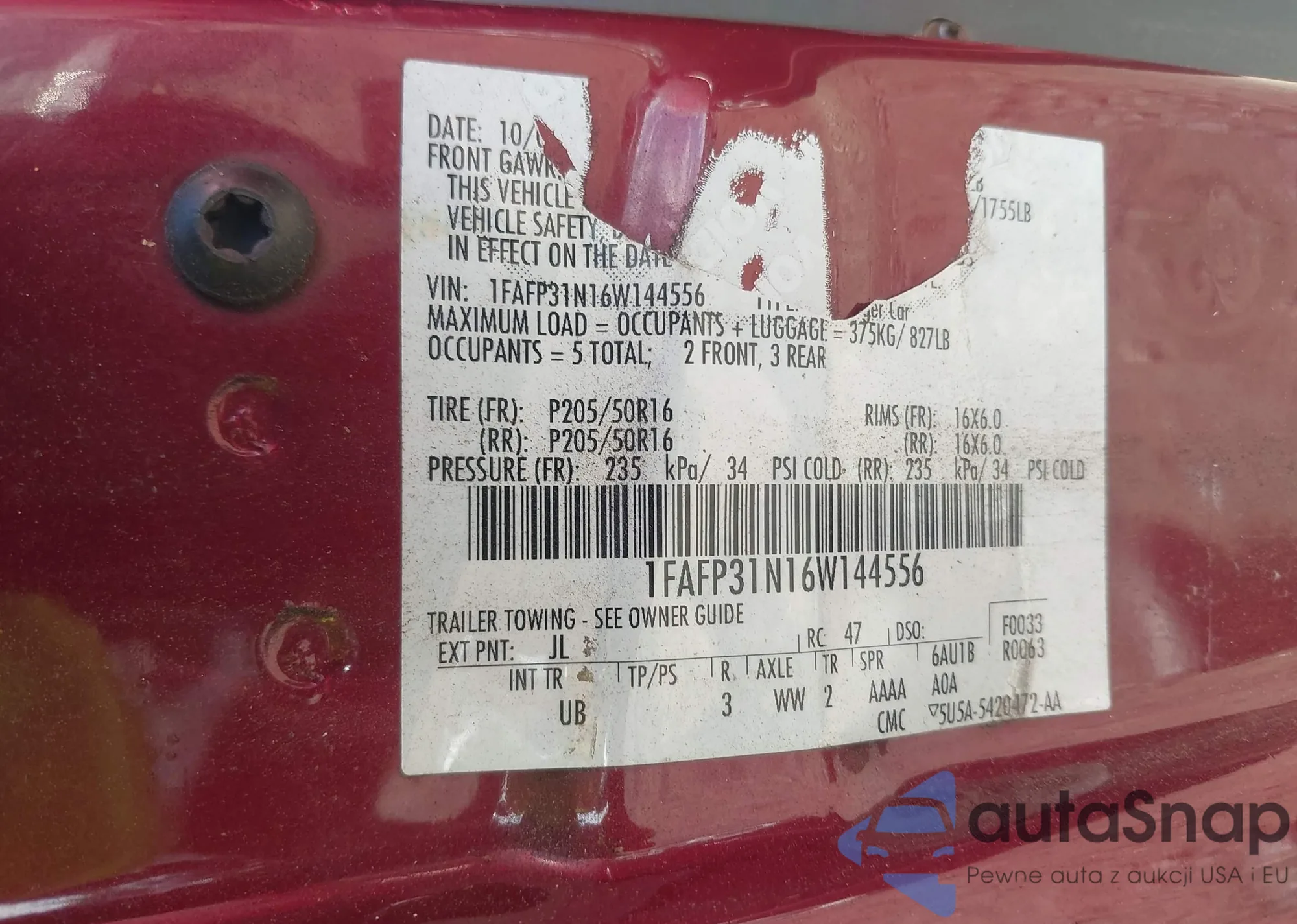 VIN: 1FAFP31N16W144556