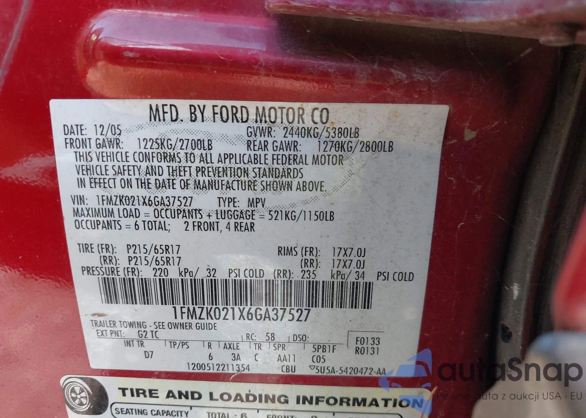 1FMZK021X6GA37527 IAAI