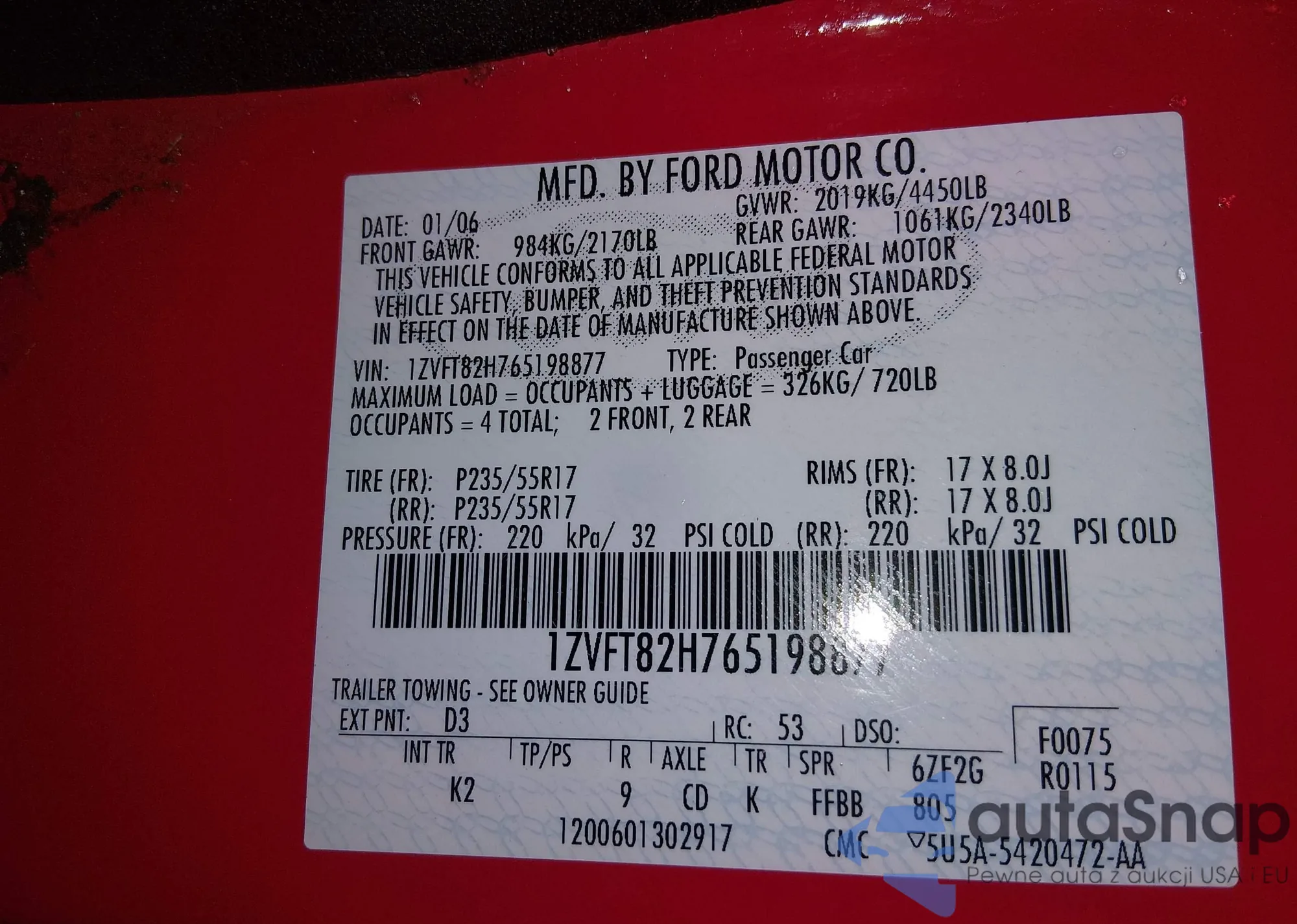 Ford Mustang 2006 – Historia pojazdu (sprzedany na IAAI)