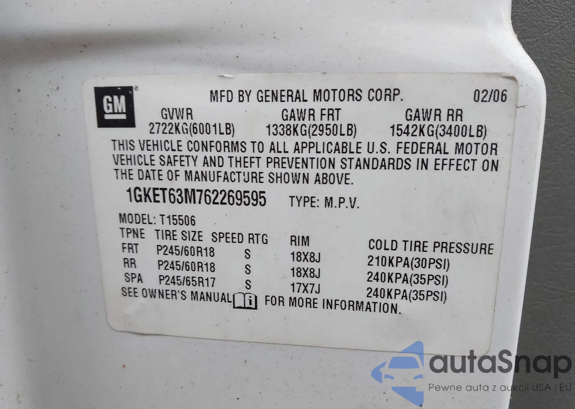 VIN: 1GKET63M762269595