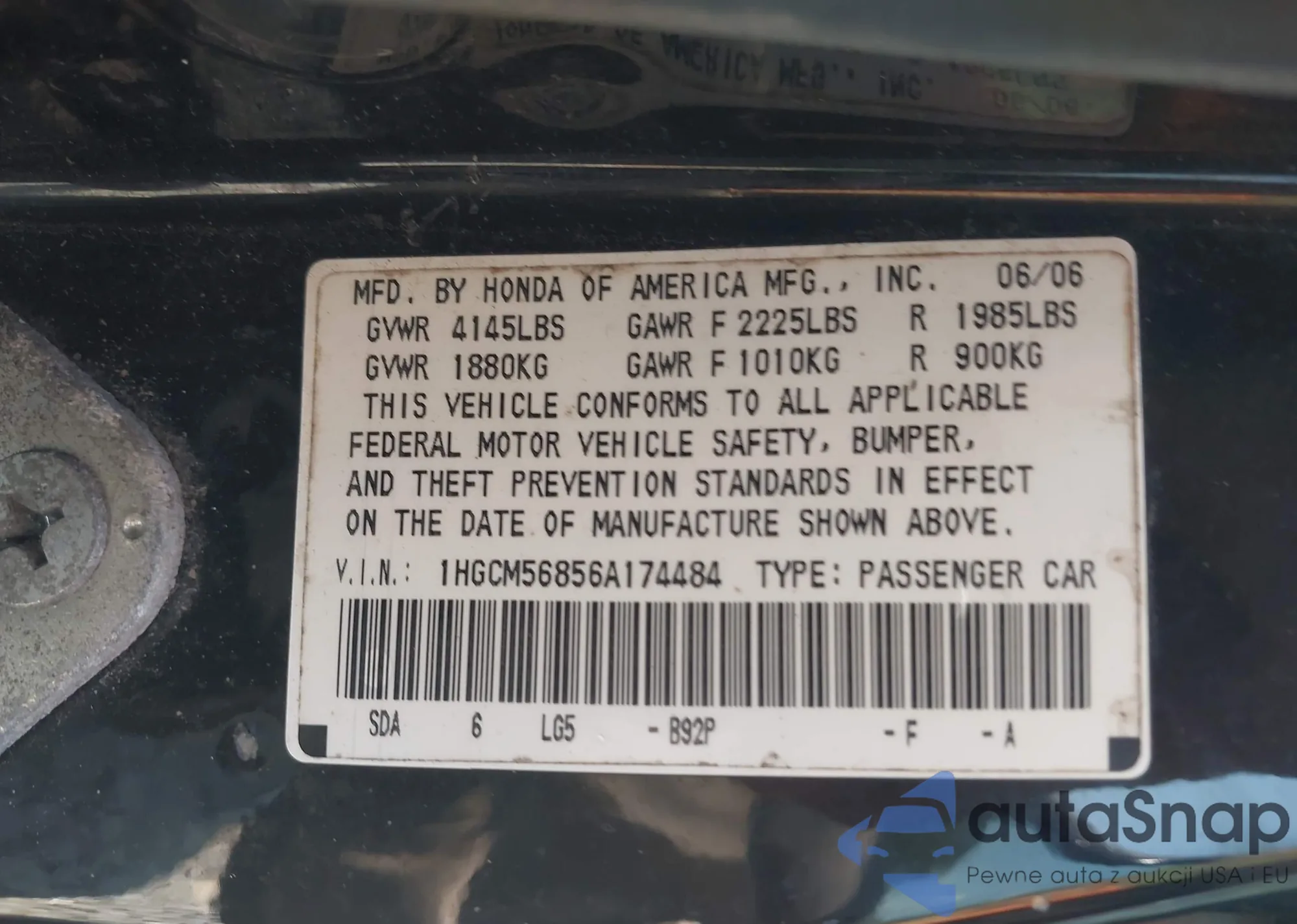 VIN: 1HGCM56856A174484