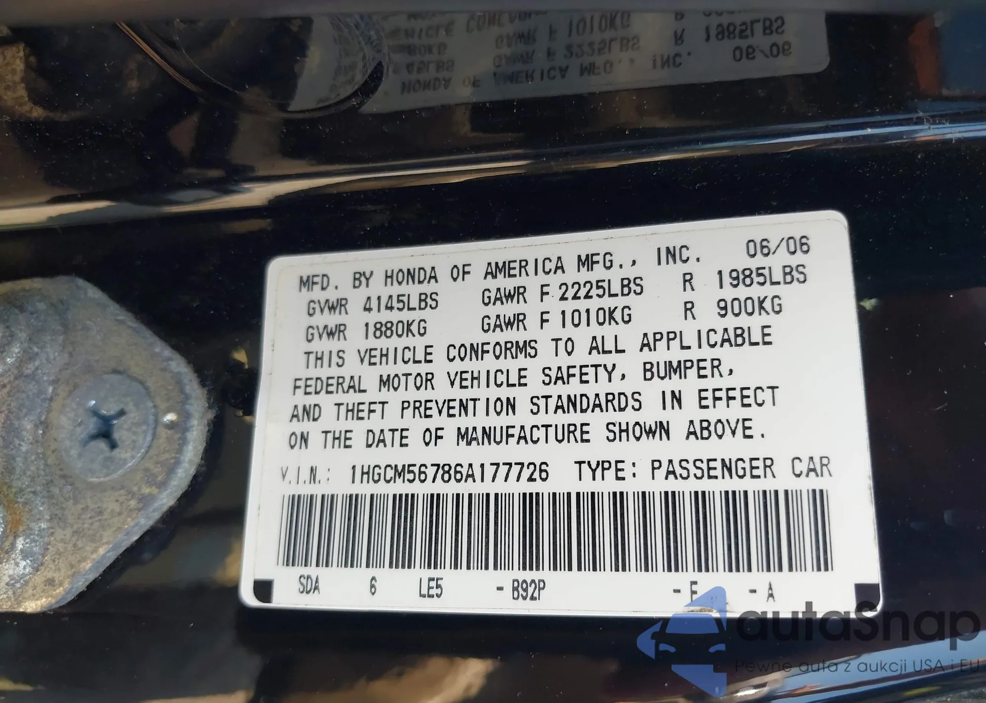 VIN: 1HGCM56786A177726