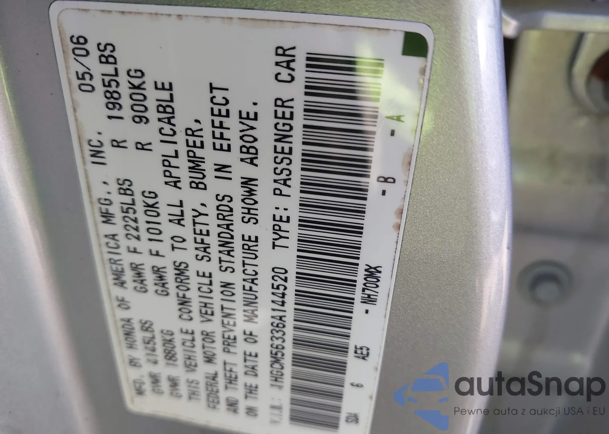 • VIN: 1HGCM56336A144520