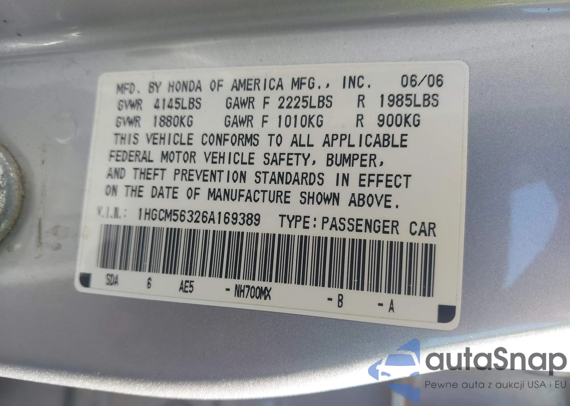 VIN: 1HGCM56326A169389