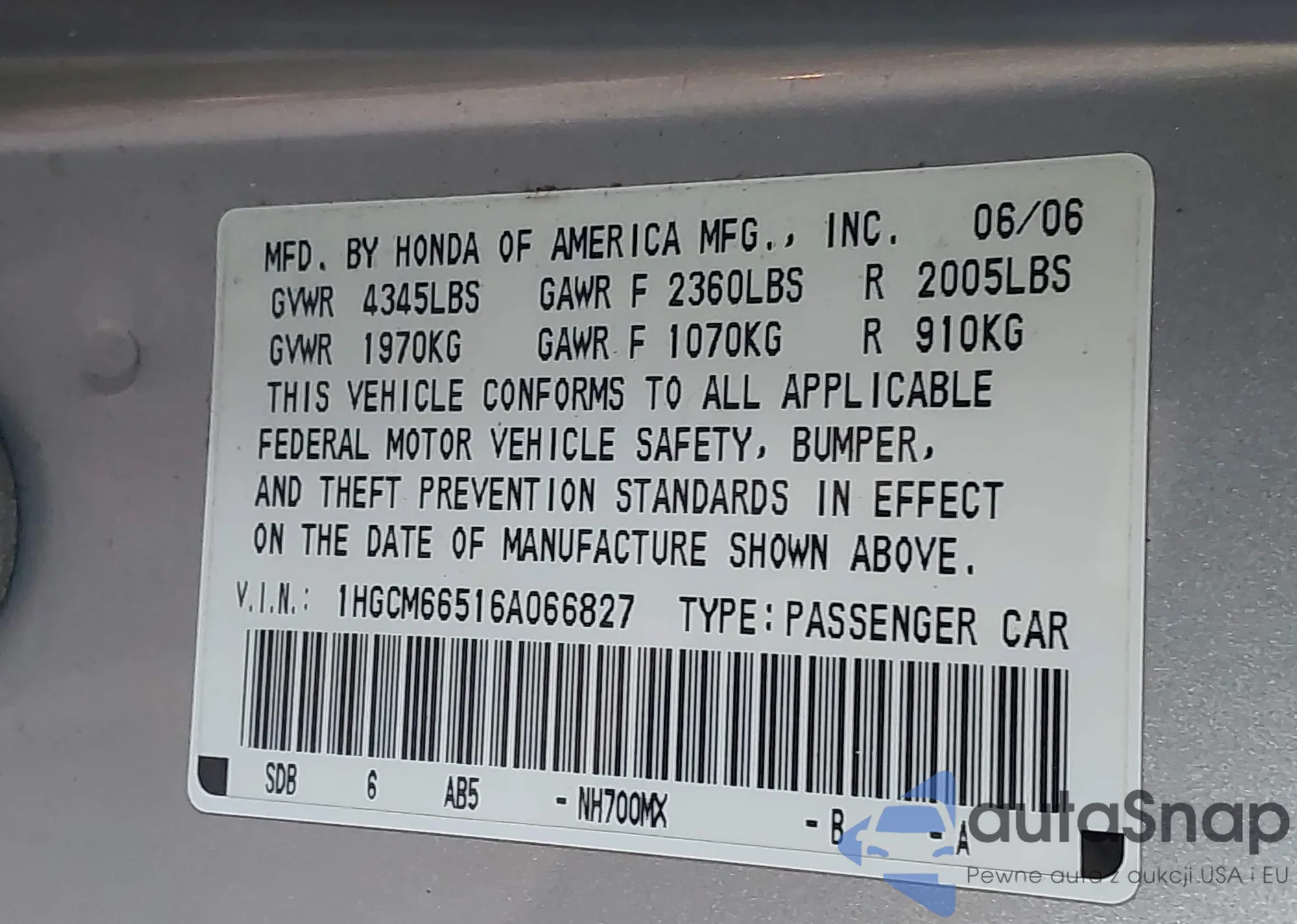 VIN: 1HGCM66516A066827