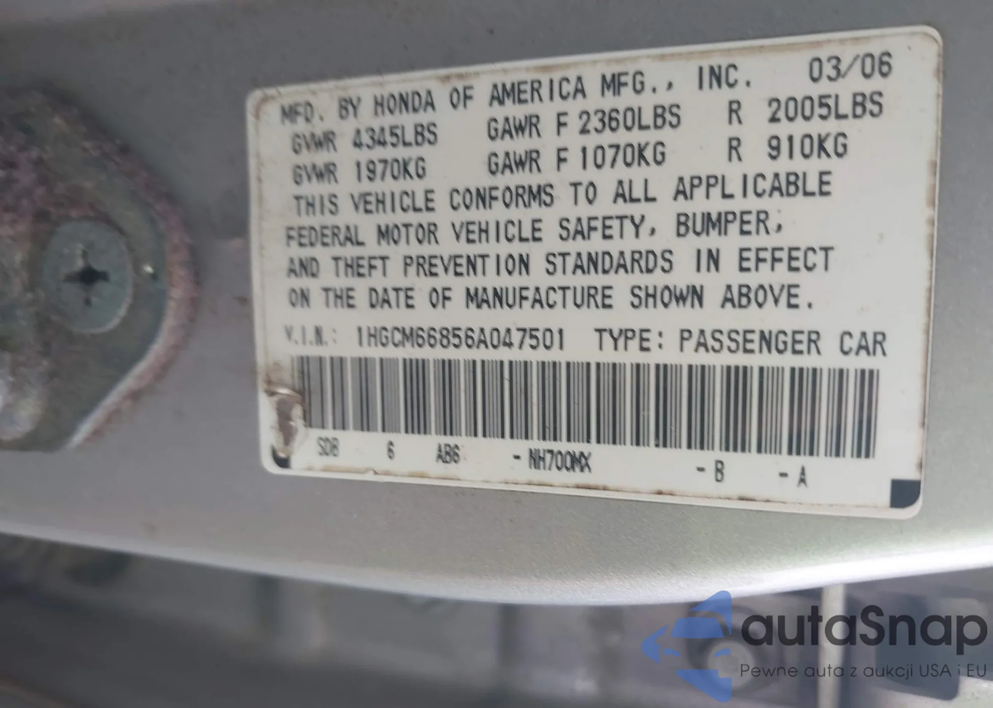 VIN: 1HGCM66856A047501