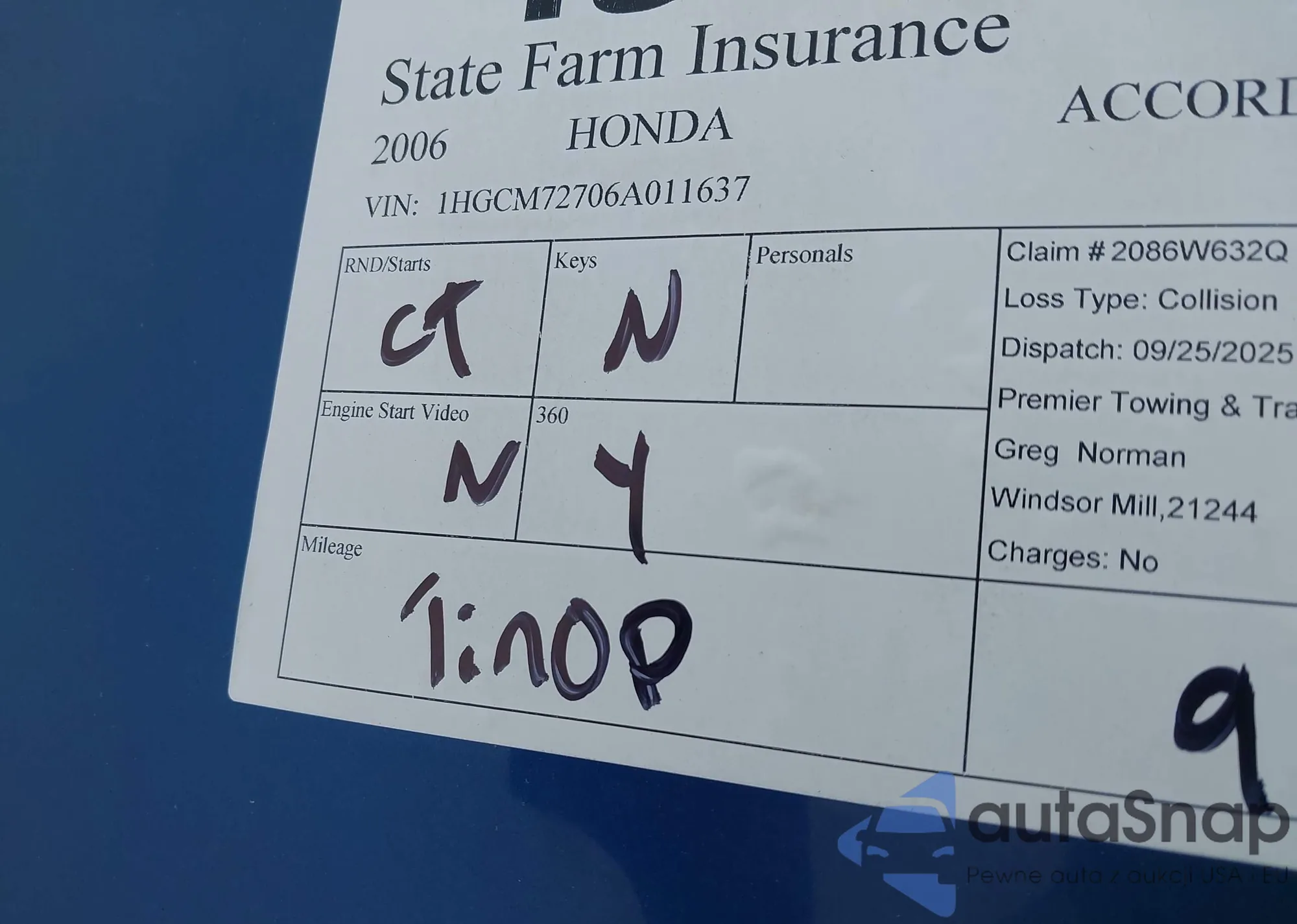 VIN: 1HGCM72706A011637