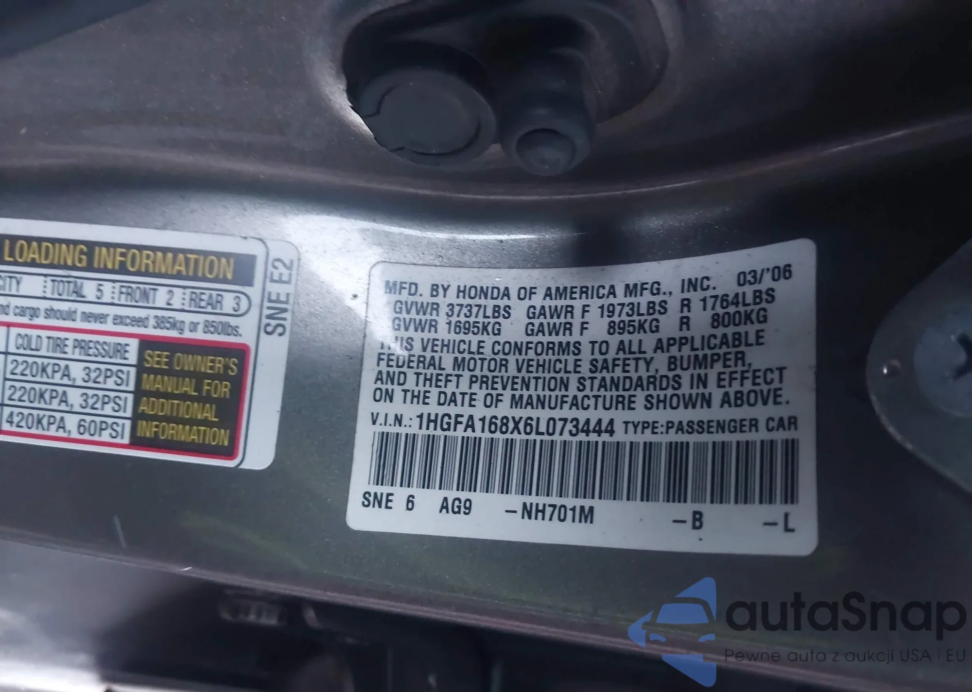 • VIN: 1HGFA168X6L073444