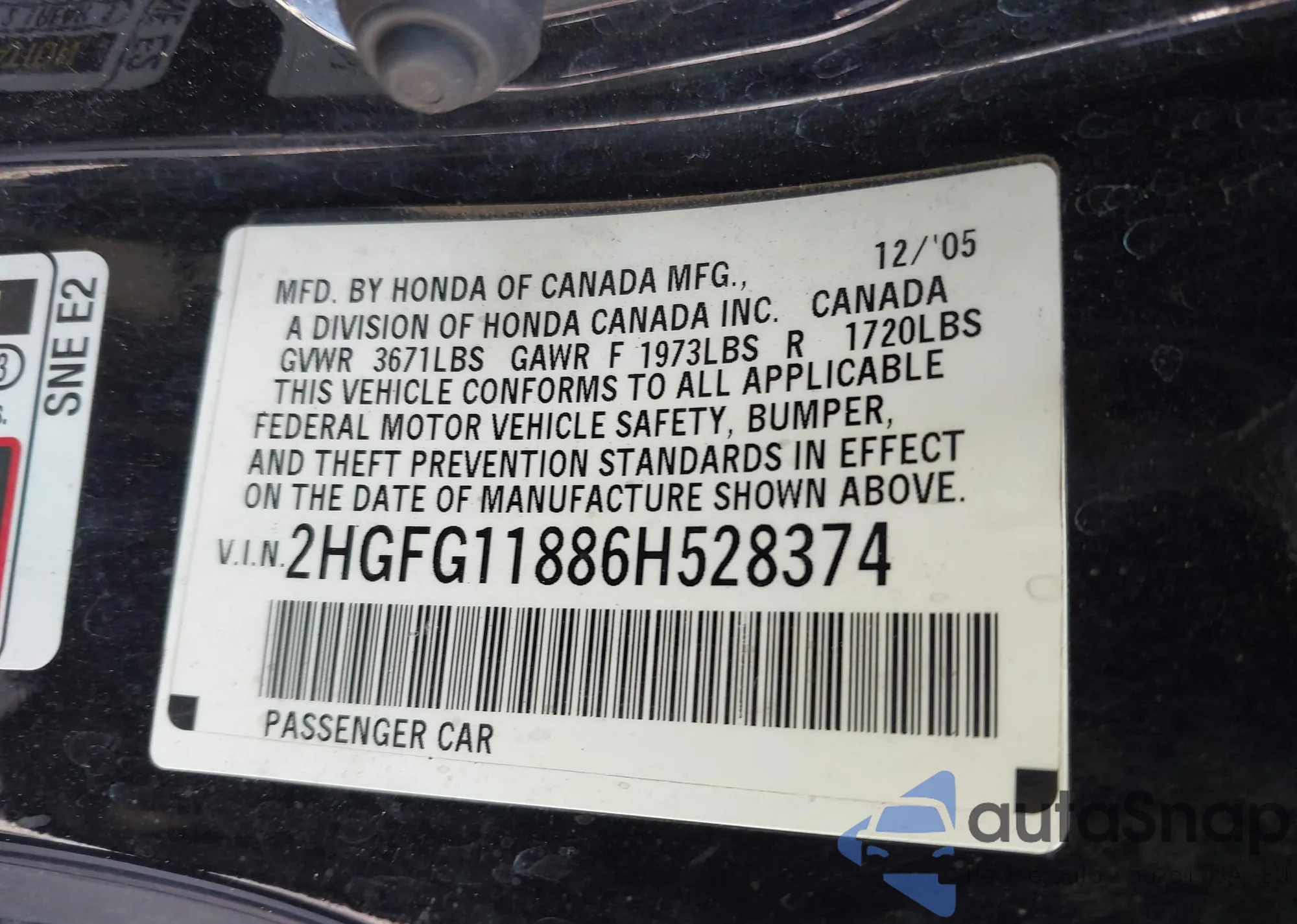 VIN: 2HGFG11886H528374