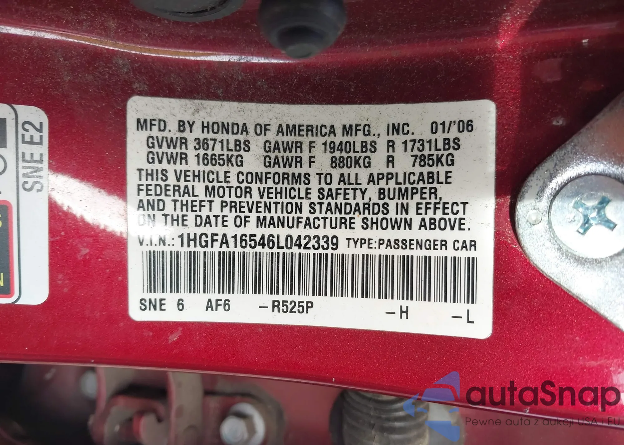 Samochód Honda Civic 2006 (VIN 1HGFA16546L042339) nie był wcześniej licytowany. Dokumenty są czyste, przebieg odpowiada lub jest niższy niż średnia rynku. Sprzedaje go firma ubezpieczeniowa – polecamy zakup. Dostawa do portu zajmie ok. 6–8 tygodni.