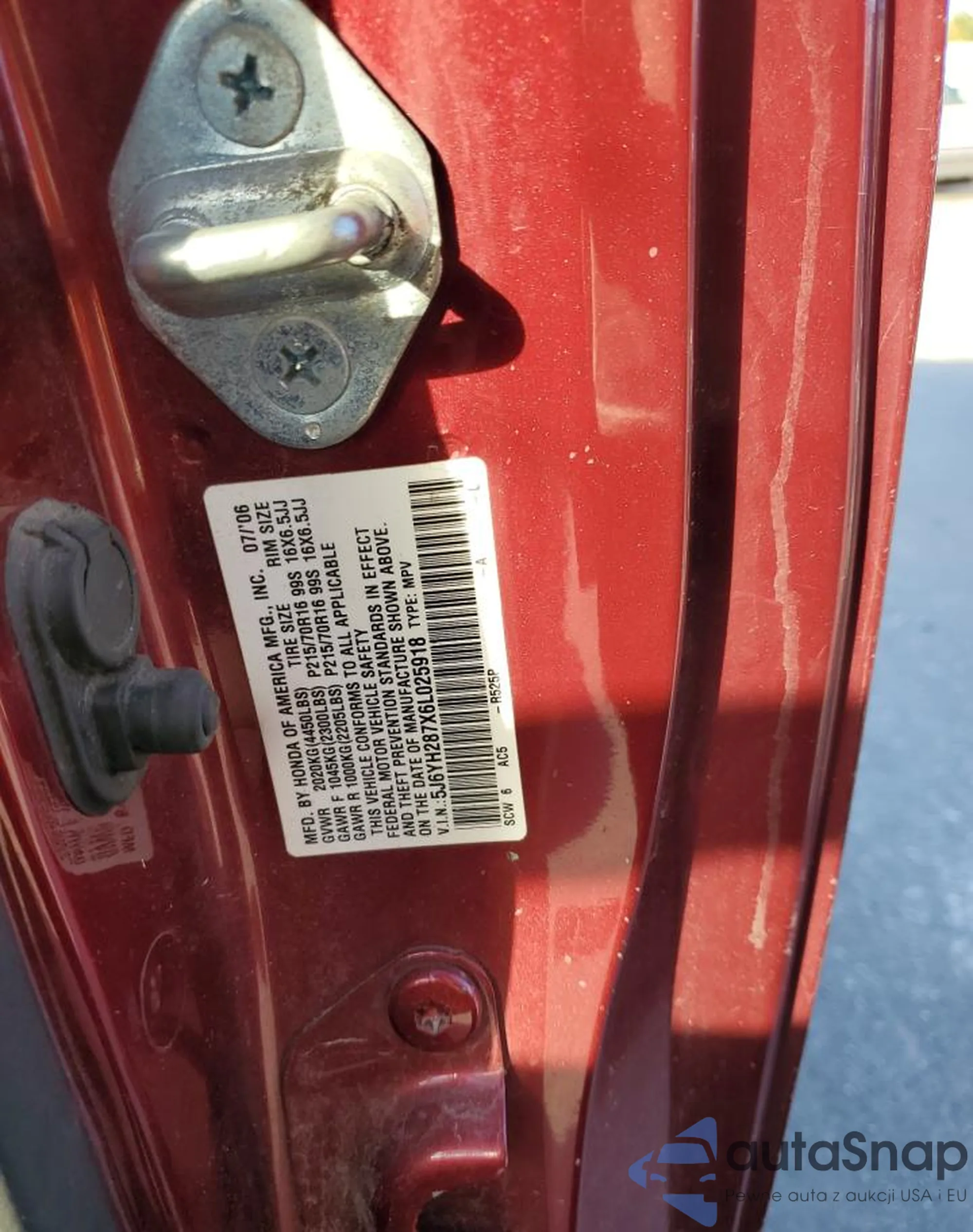 VIN: 5J6YH287X6L025918