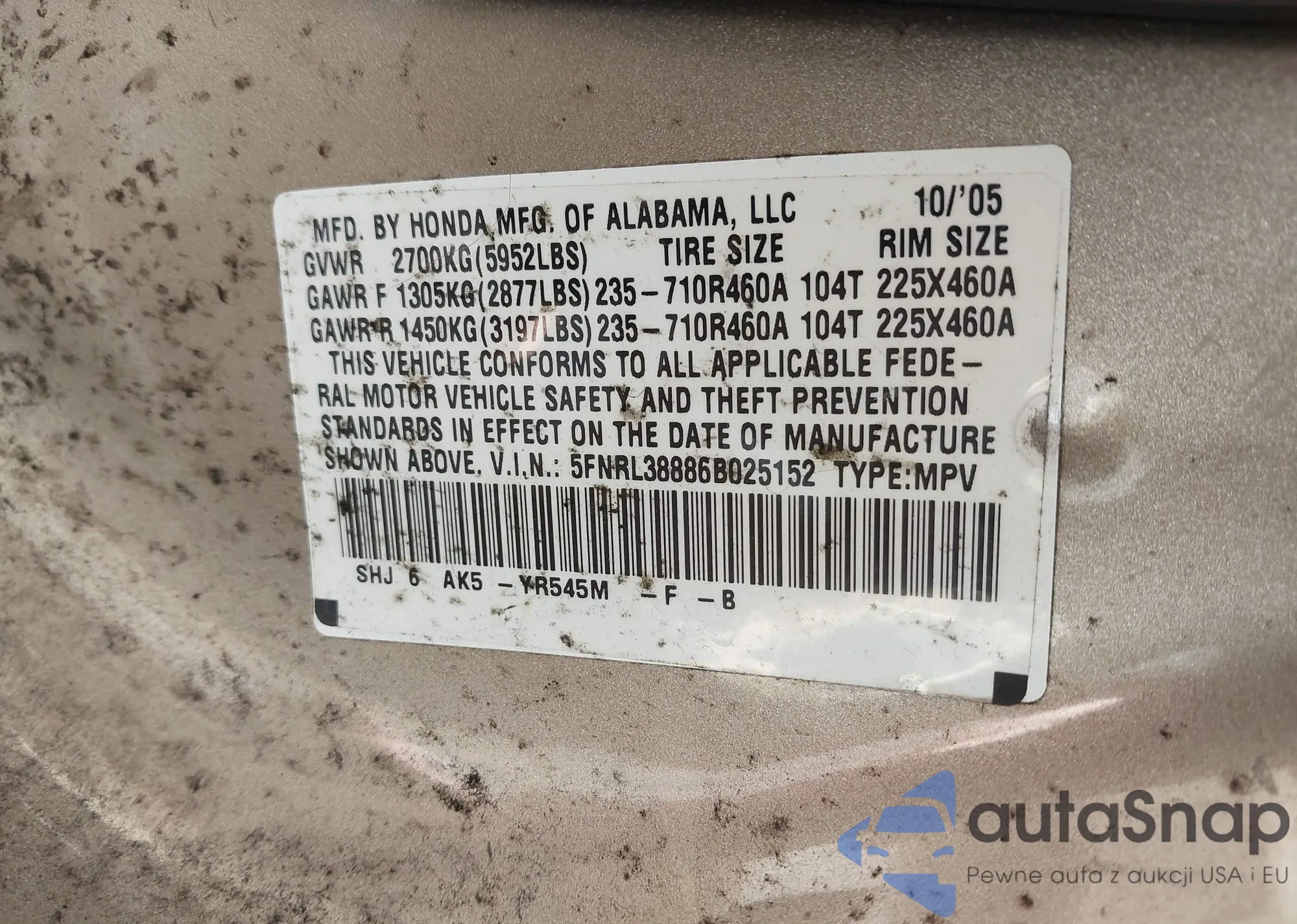 VIN: 5FNRL38886B025152