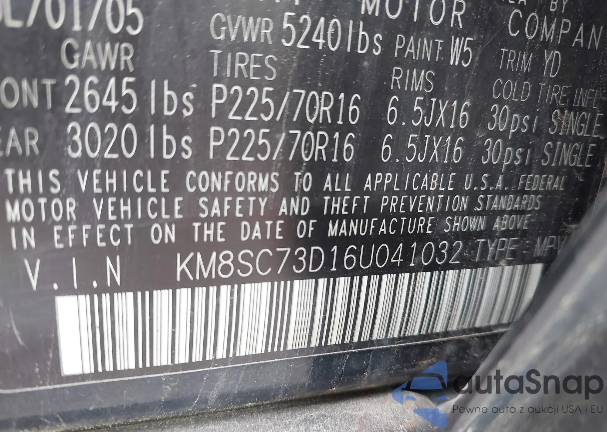VIN: KM8SC73D16U041032