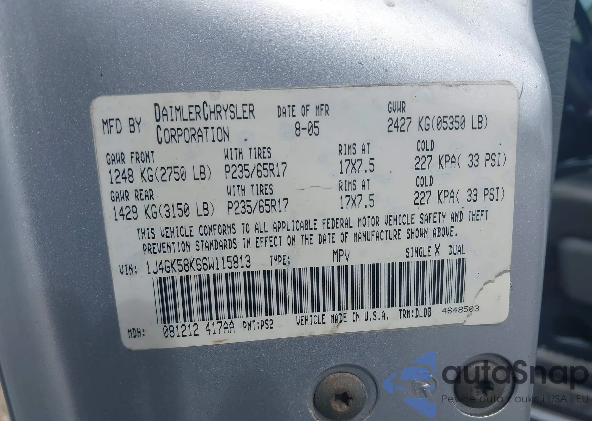 VIN: 1J4GK58K66W115813
