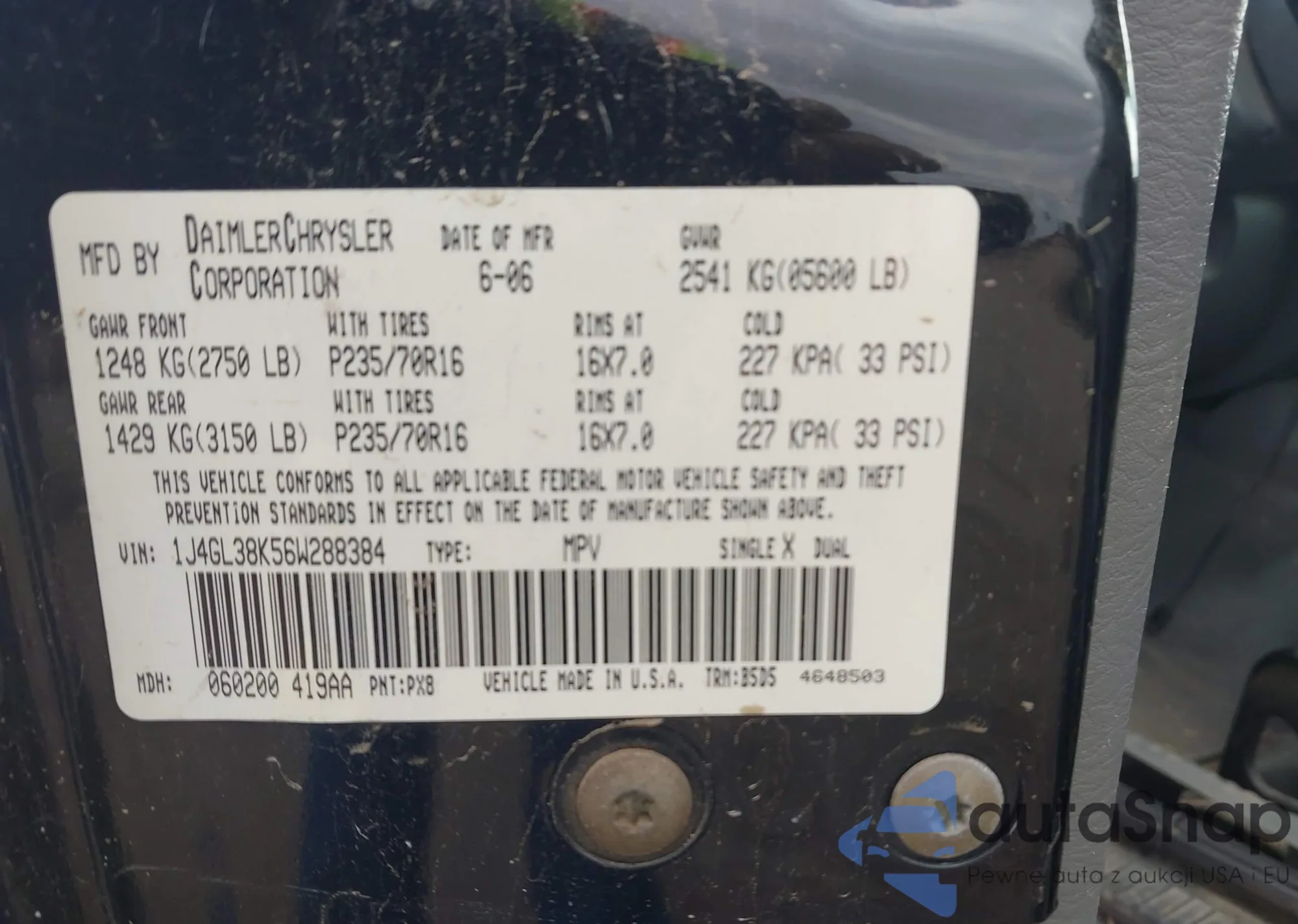 VIN: 1J4GL38K56W288384