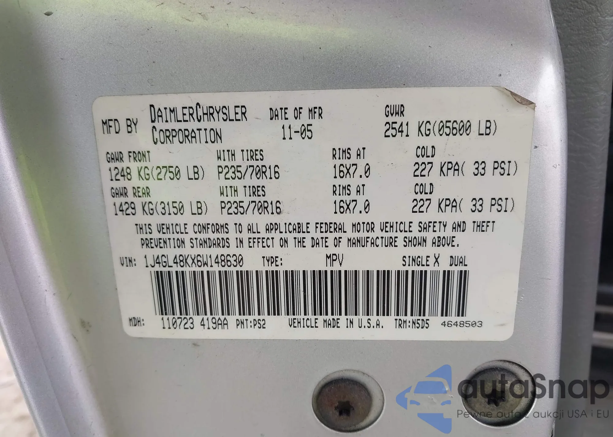 • VIN: 1J4GL48KX6W148630
