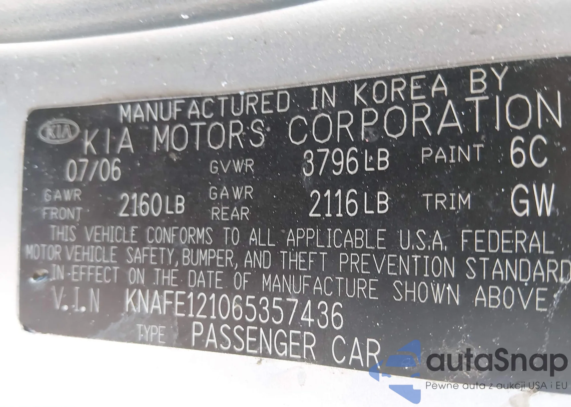 • VIN: KNAFE121065357436