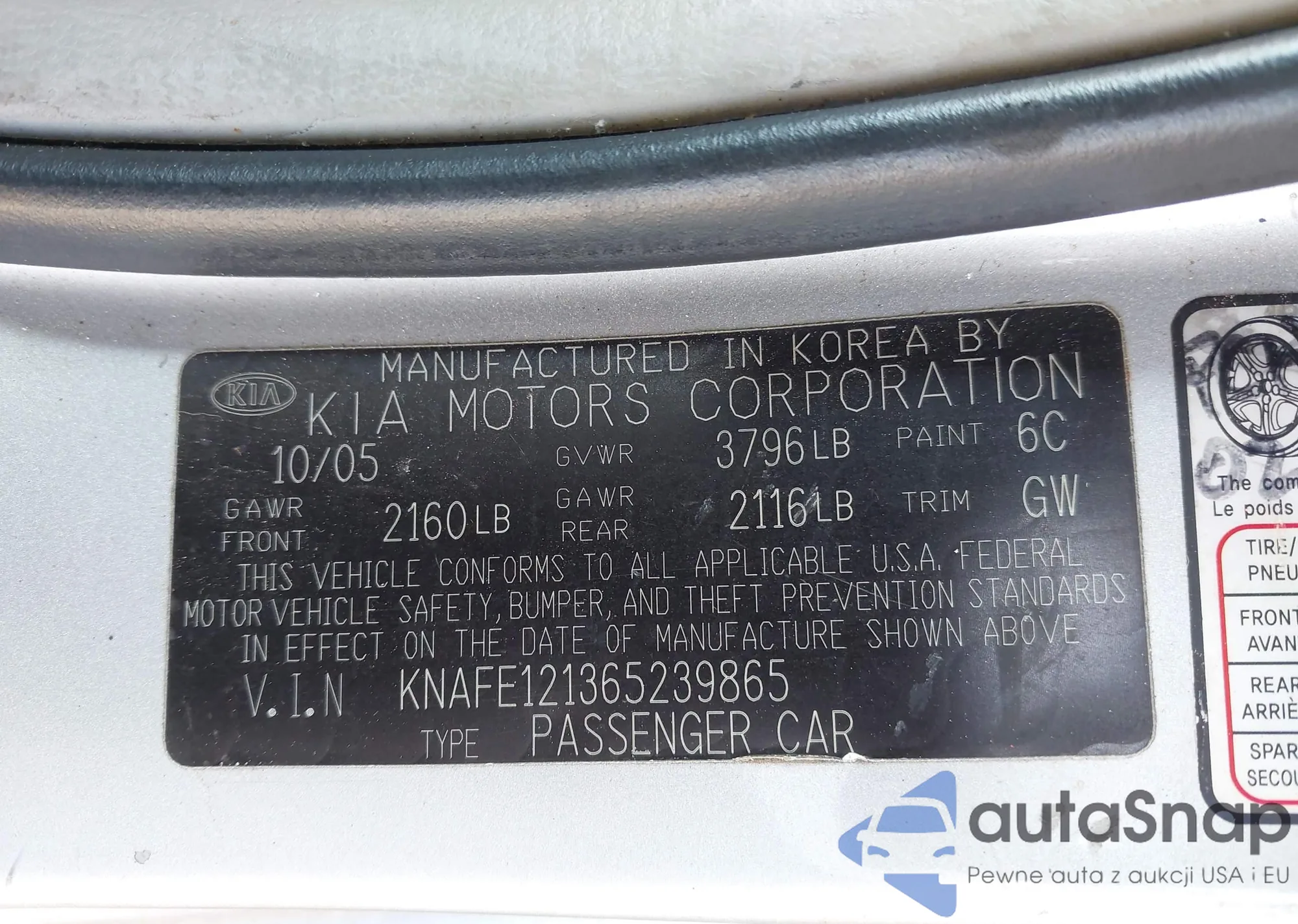 VIN: KNAFE121365239865