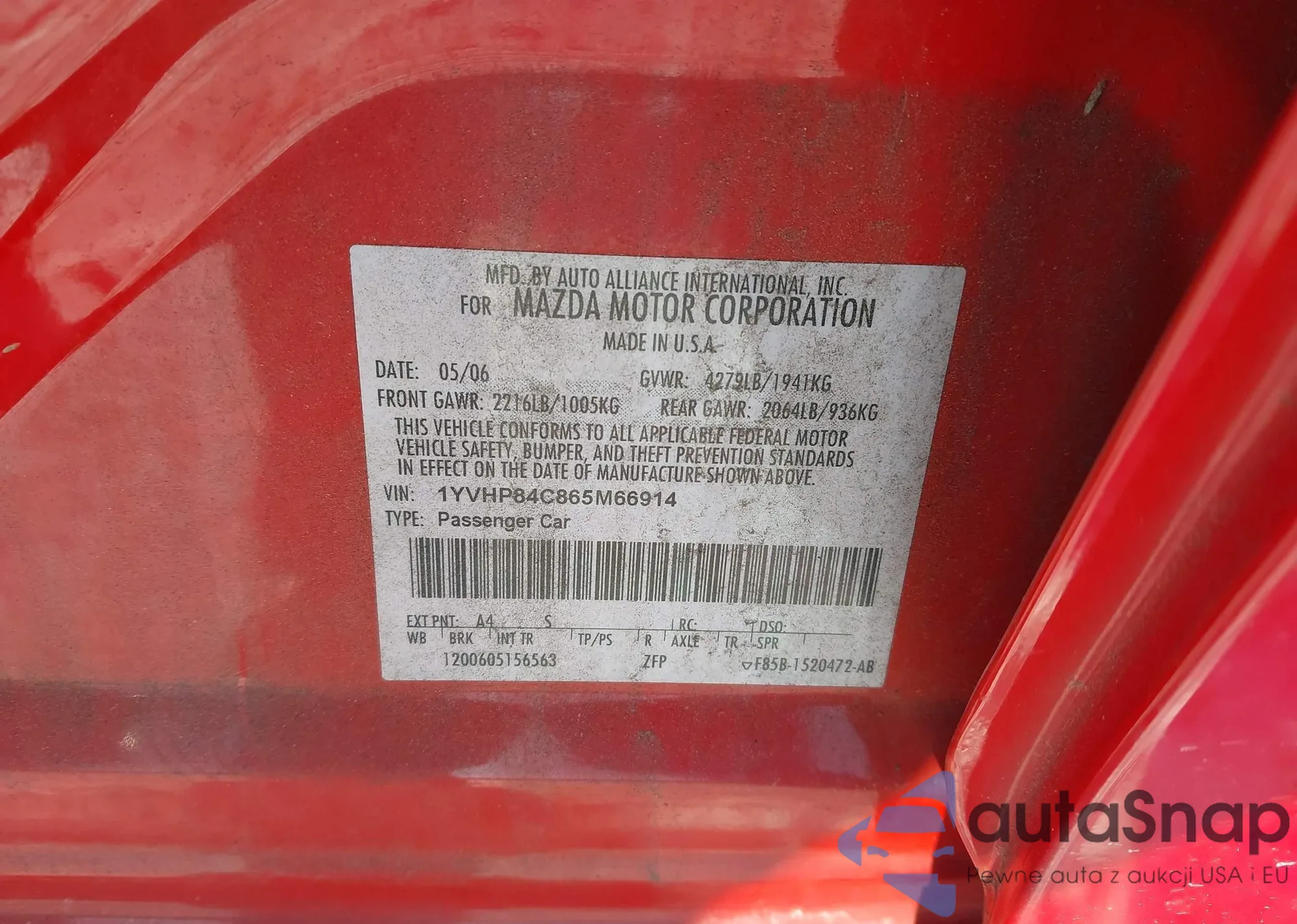 • VIN: 1YVHP84C865M66914