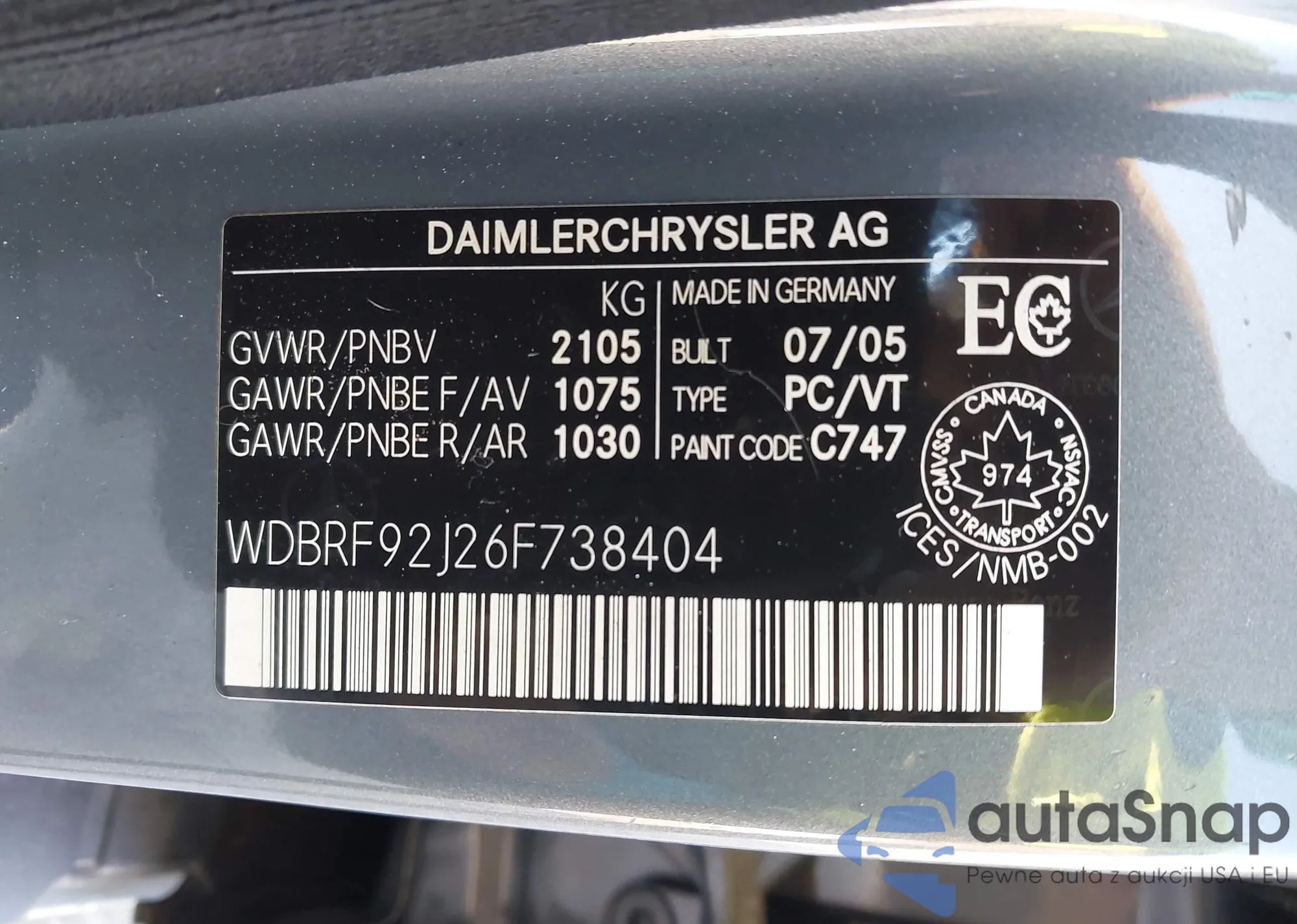 VIN: WDBRF92J26F738404