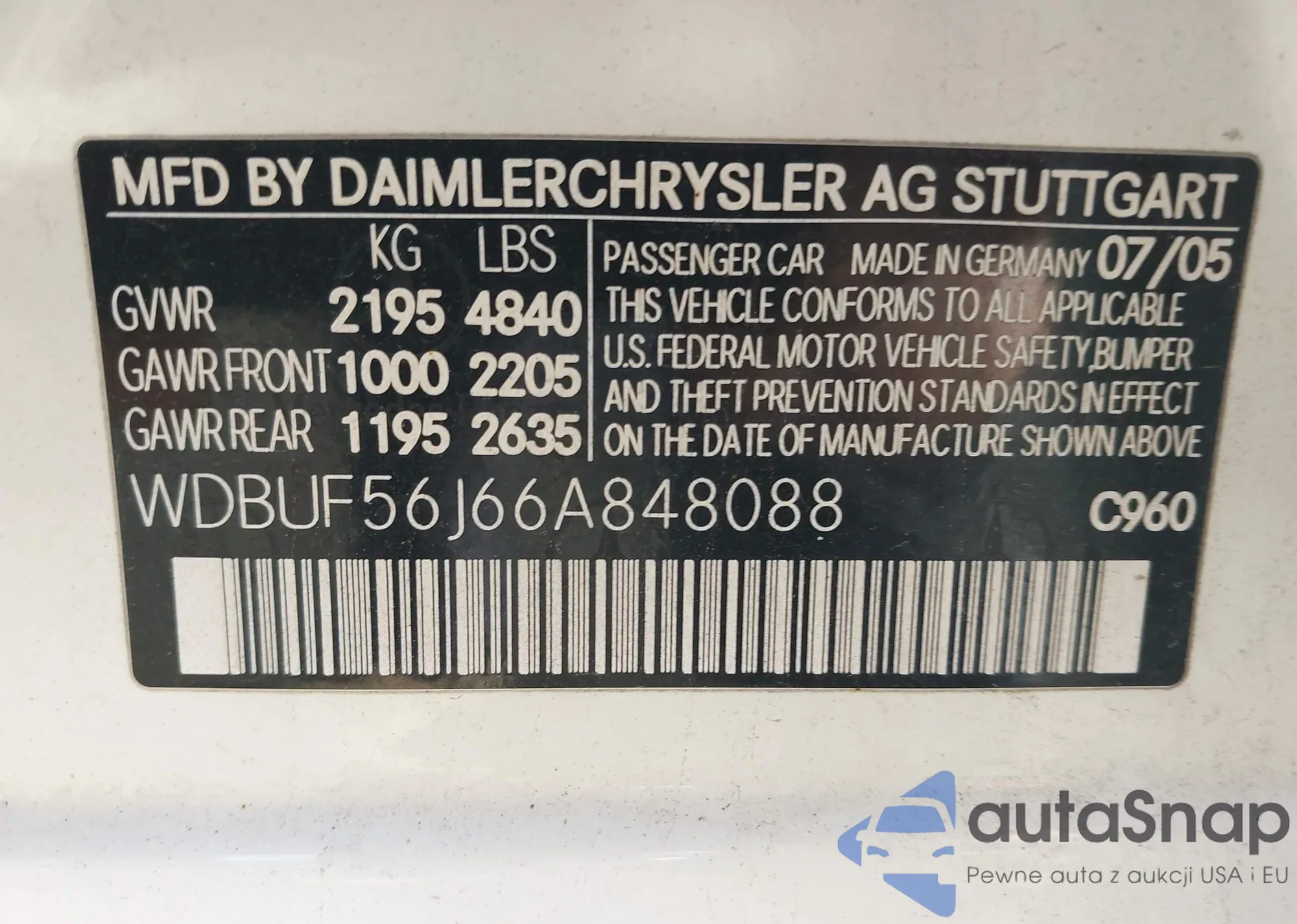 Samochód Mercedes-Benz E-klasse 2006 (VIN WDBUF56J66A848088) nie był wcześniej licytowany. Dokumenty są czyste, przebieg odpowiada lub jest niższy niż średnia rynku. Sprzedaje go firma ubezpieczeniowa – polecamy zakup. Dostawa do portu zajmie ok. 6–8 tygodni.