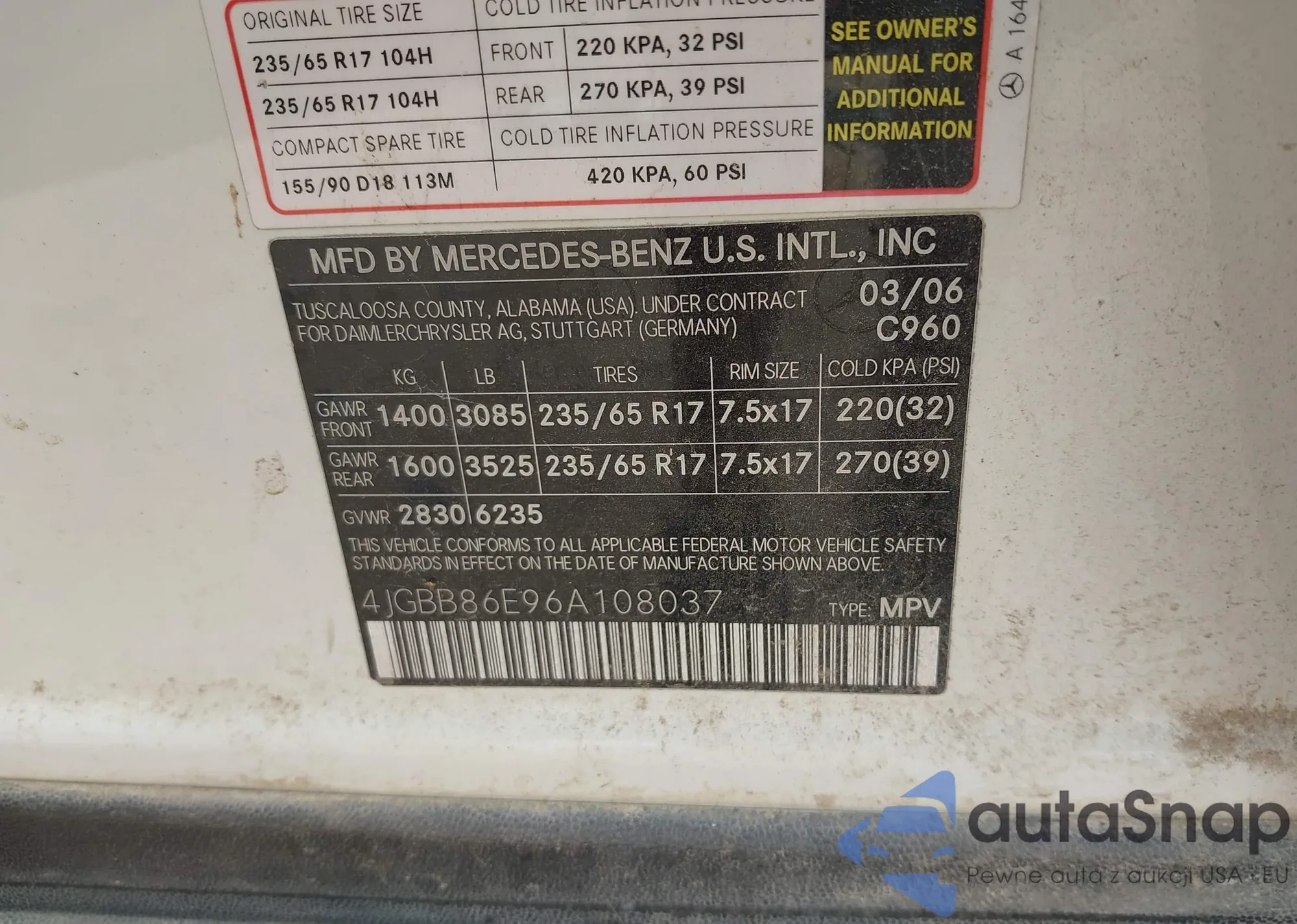 • VIN: 4JGBB86E96A108037