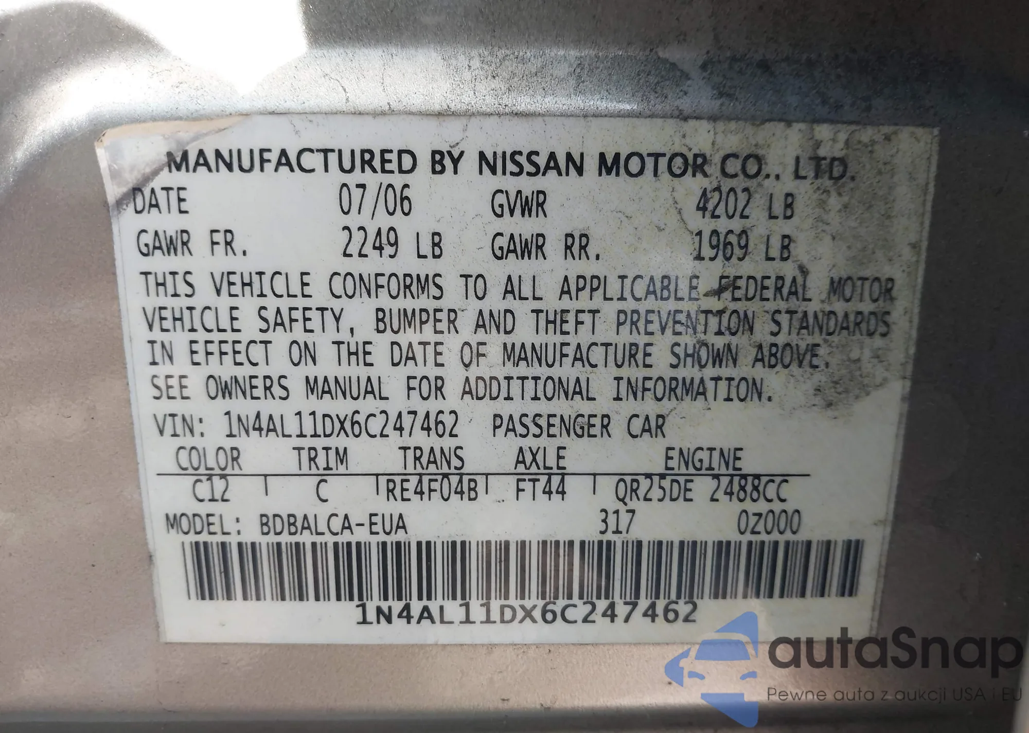 VIN: 1N4AL11DX6C247462