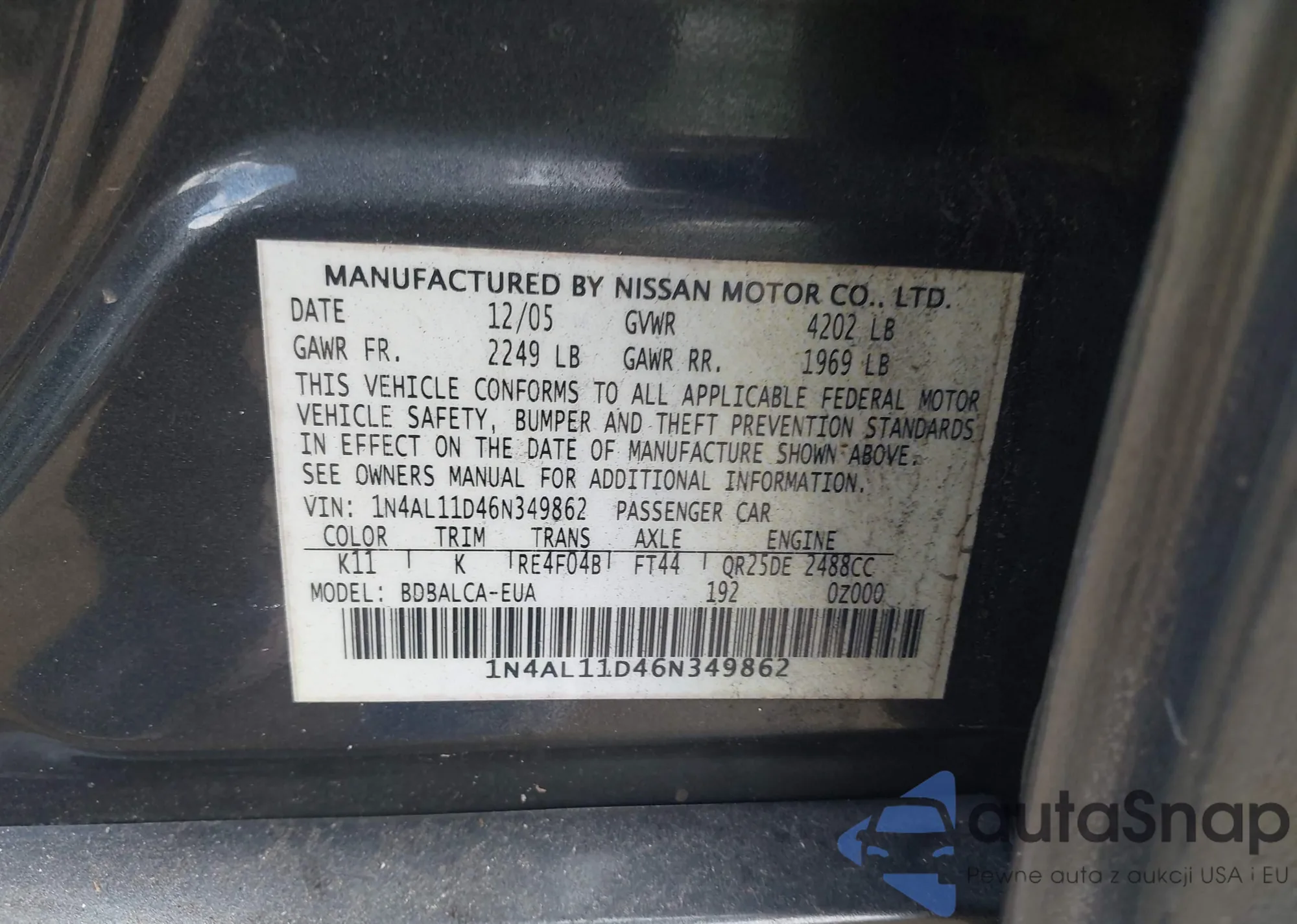 VIN: 1N4AL11D46N349862