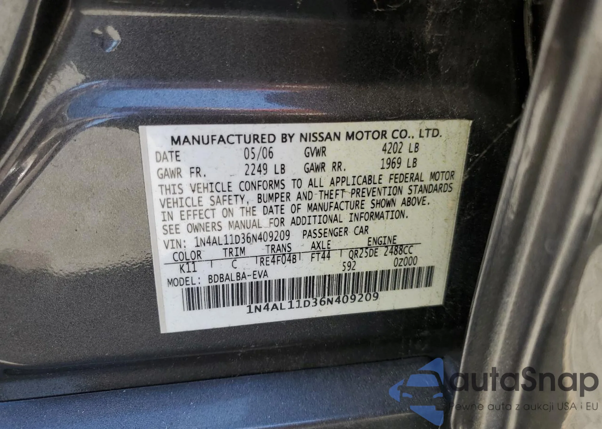 VIN: 1N4AL11D36N409209