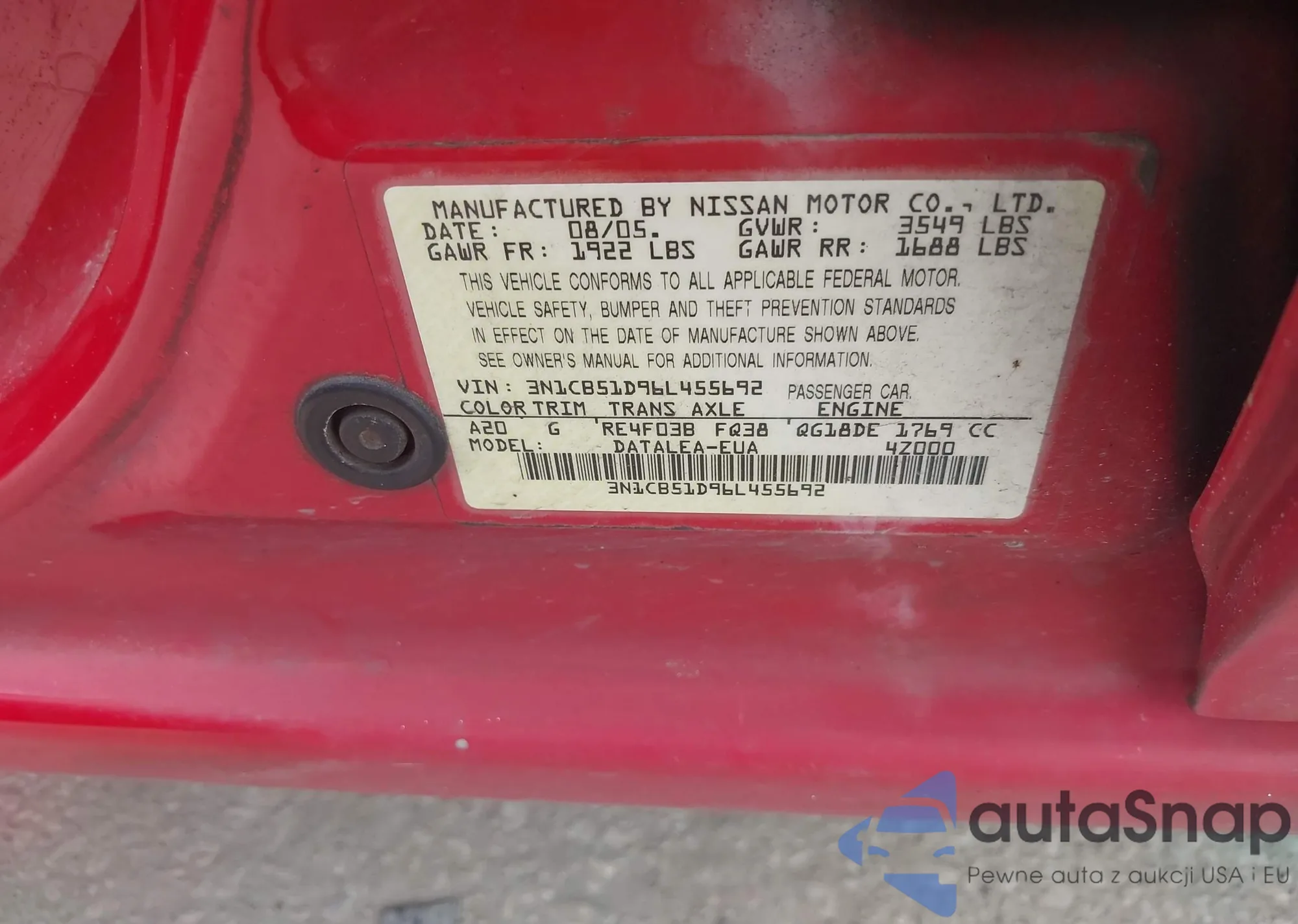 • VIN: 3N1CB51D96L455692