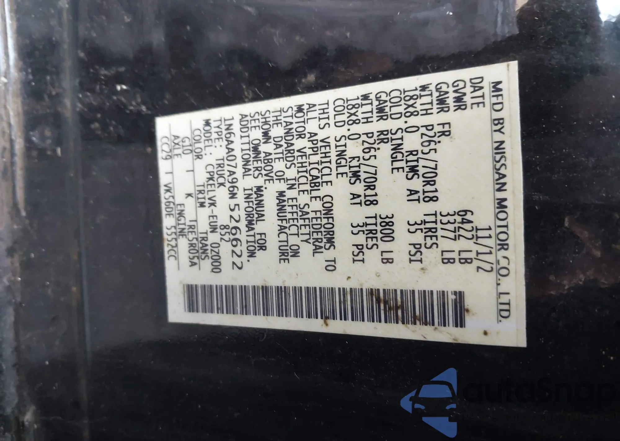 VIN: 1N6AA07A96N526622