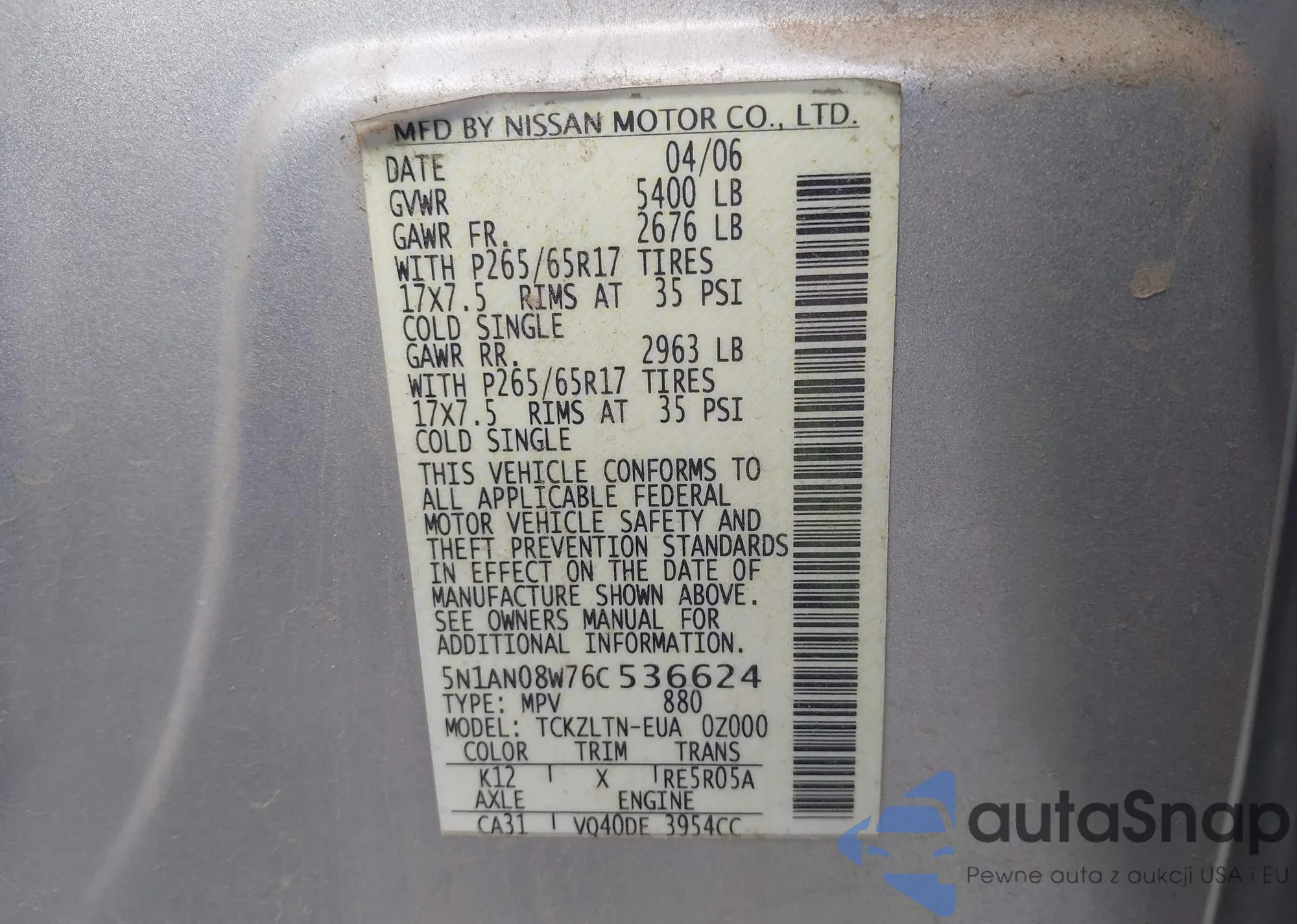 VIN: 5N1AN08W76C536624