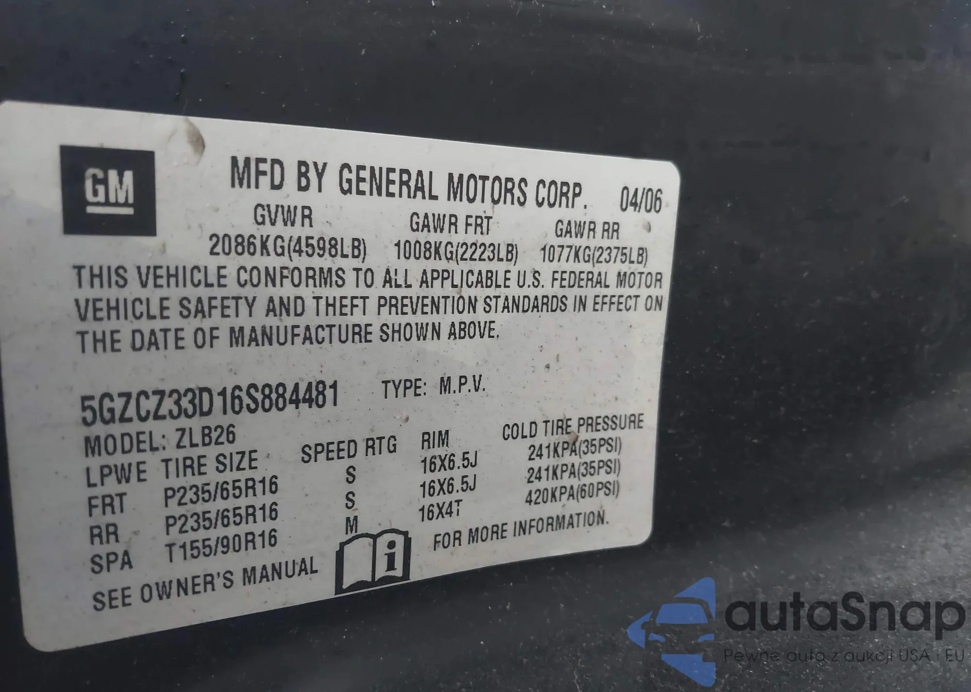 Samochód Saturn VUE 2006 (VIN 5GZCZ33D16S884481) nie był wcześniej licytowany. Dokumenty są czyste, przebieg odpowiada lub jest niższy niż średnia rynku. Sprzedaje go firma ubezpieczeniowa – polecamy zakup. Dostawa do portu zajmie ok. 6–8 tygodni.