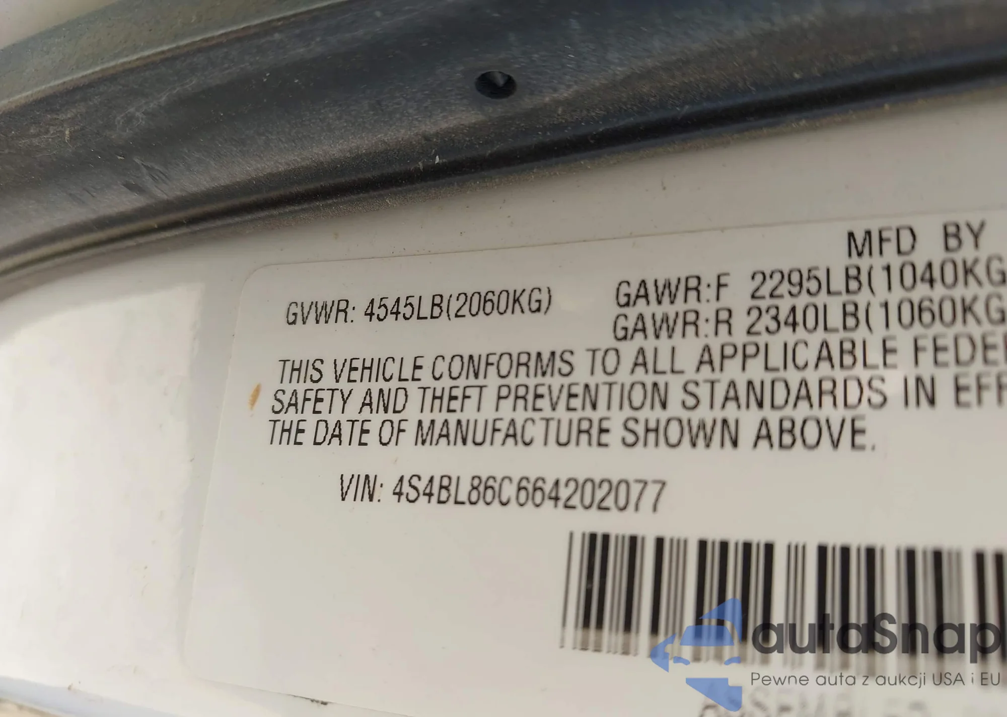 • VIN: 4S4BL86C664202077