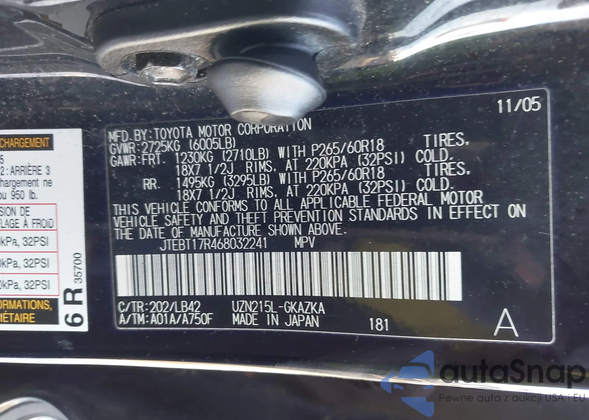 VIN: JTEBT17R468032241