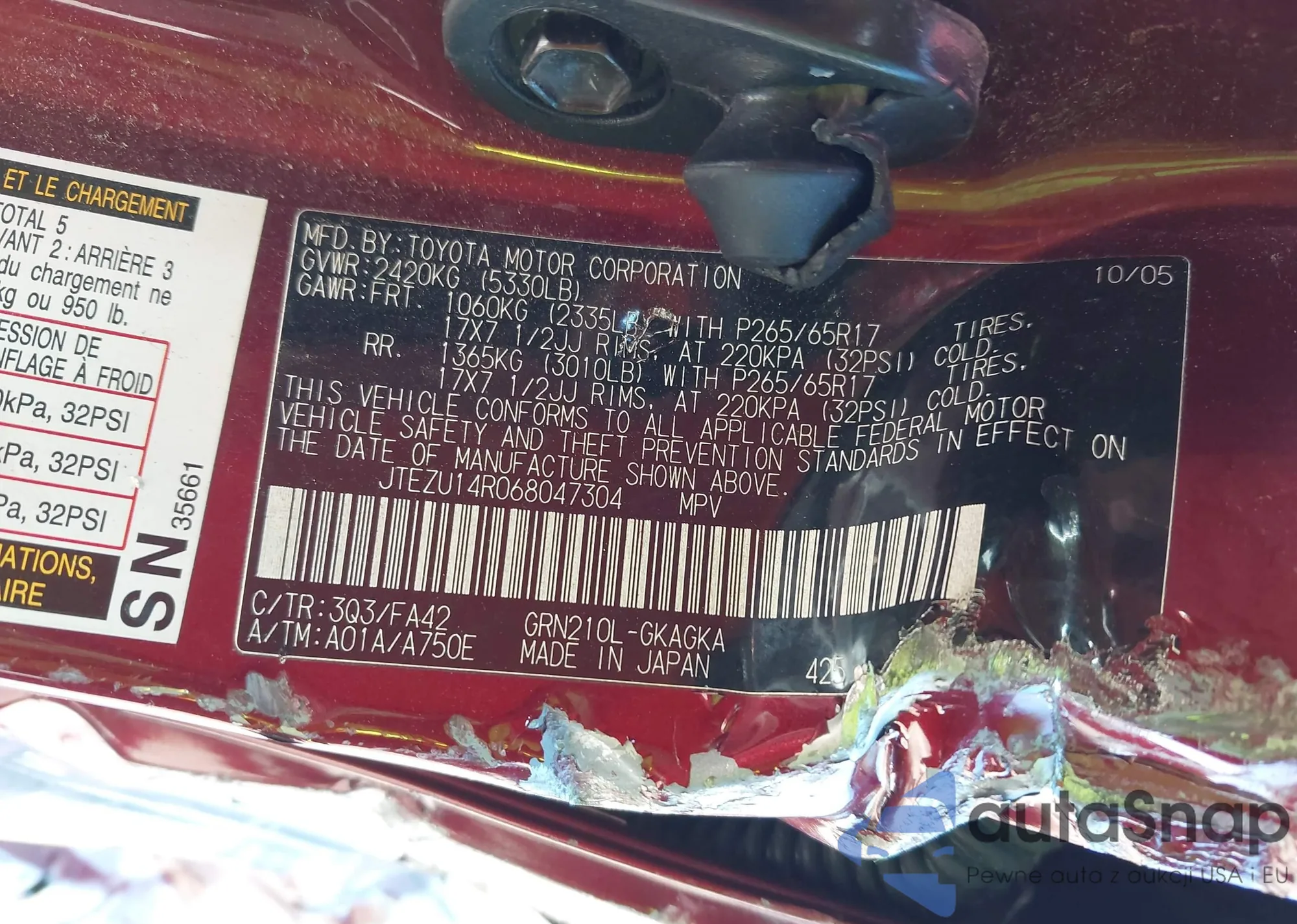 Samochód Toyota 4Runner 2006 (VIN JTEZU14R068047304) nie był wcześniej licytowany. Dokumenty są czyste, przebieg odpowiada lub jest niższy niż średnia rynku. Sprzedaje go firma ubezpieczeniowa – polecamy zakup. Dostawa do portu zajmie ok. 6–8 tygodni.