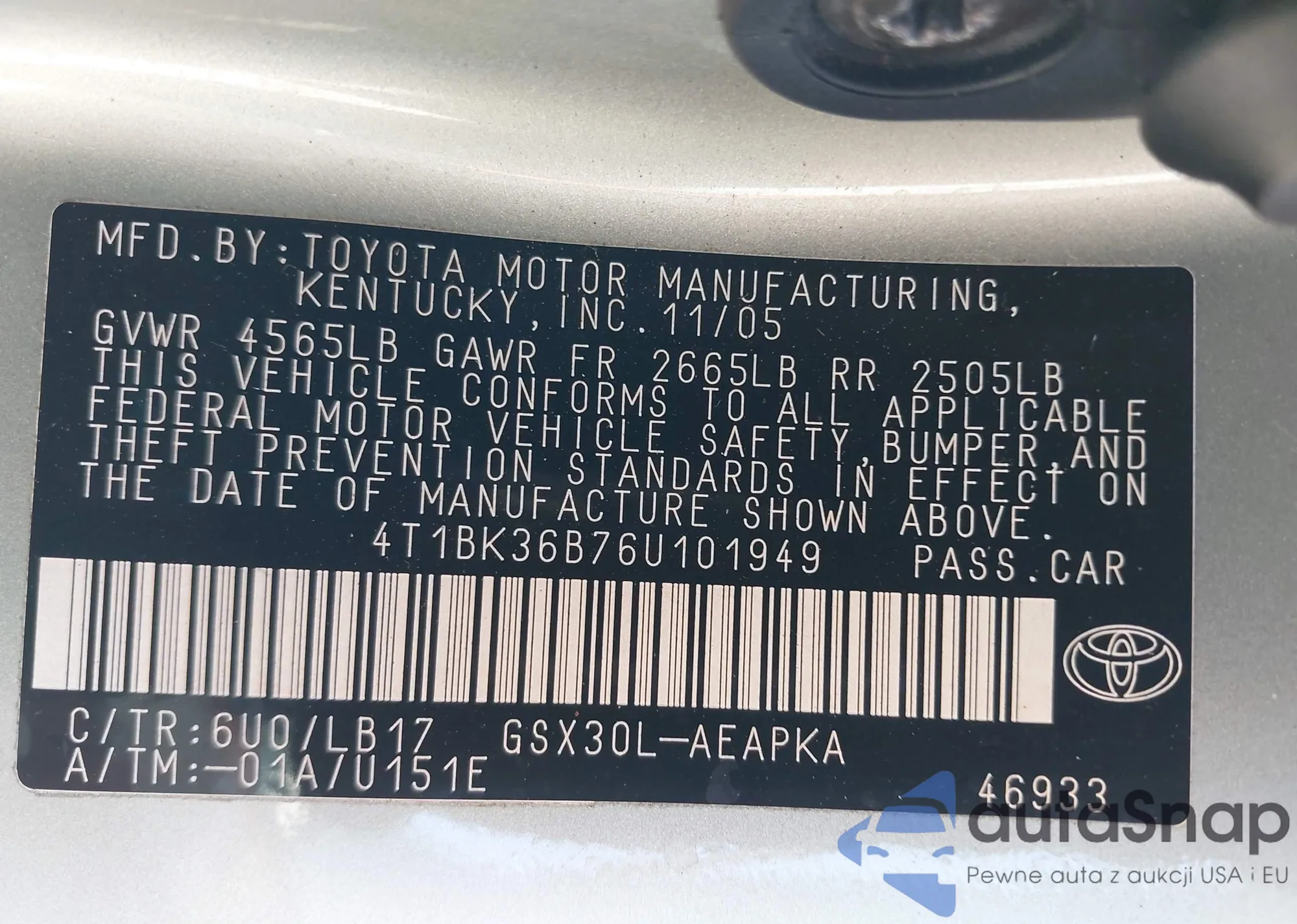 VIN: 4T1BK36B76U101949