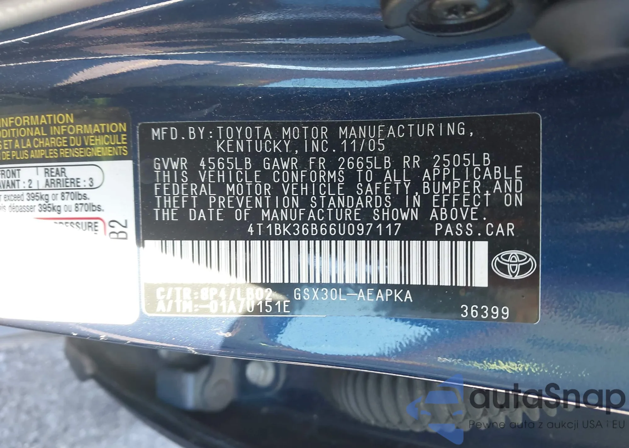 • VIN: 4T1BK36B66U097117