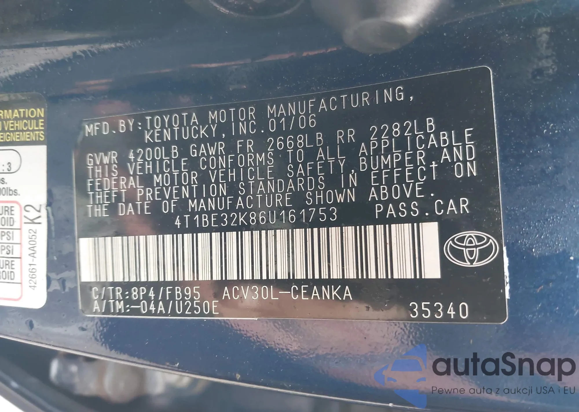VIN: 4T1BE32K86U161753