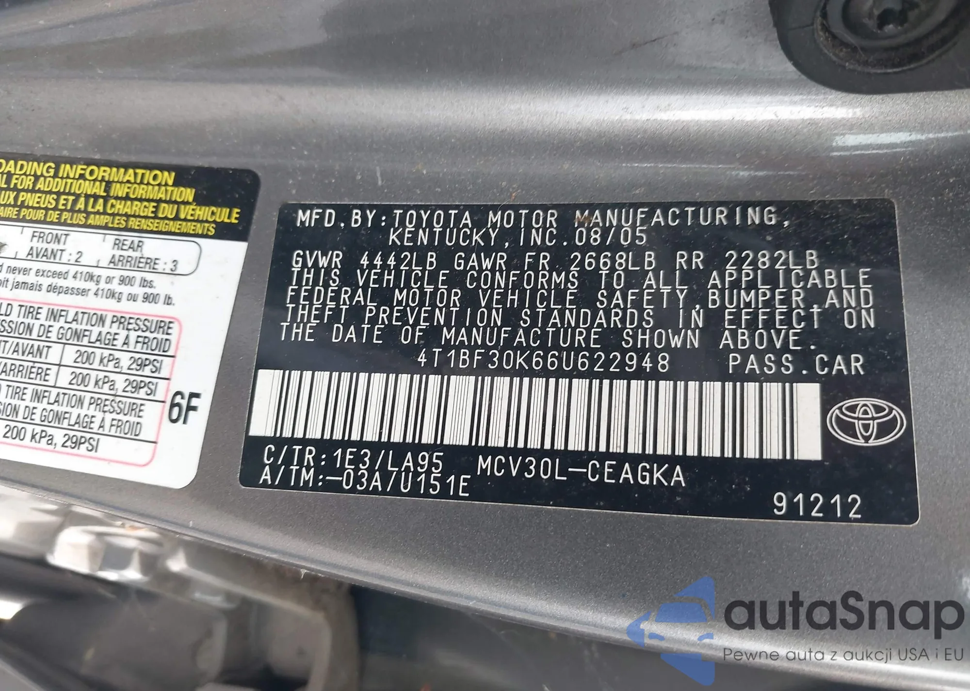 VIN: 4T1BF30K66U622948