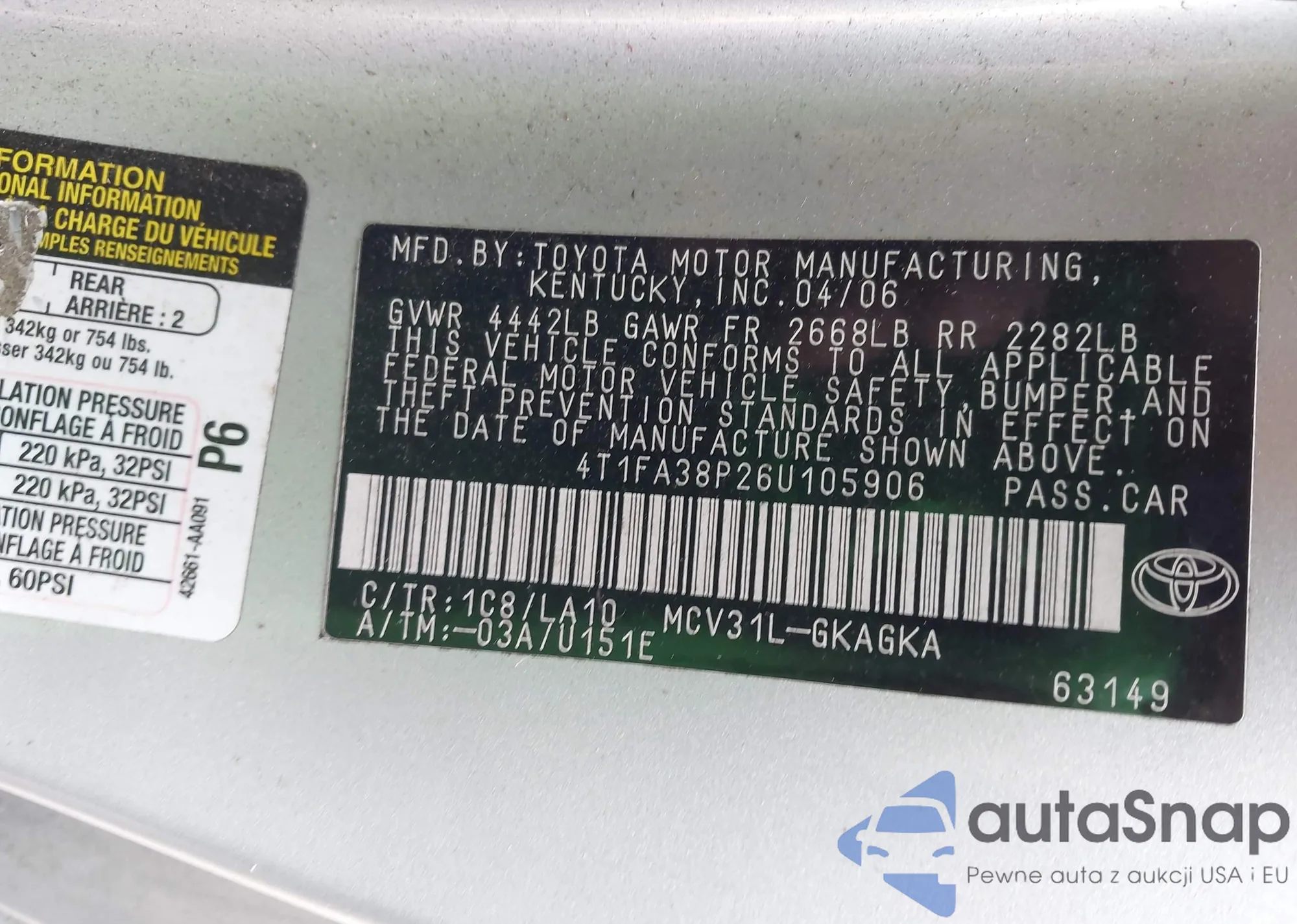 VIN: 4T1FA38P26U105906