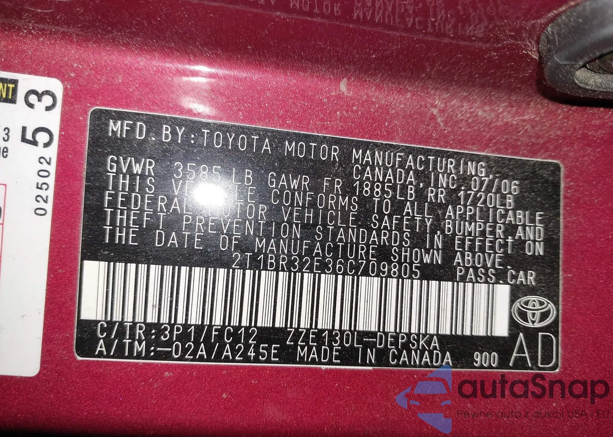 VIN: 2T1BR32E36C709805