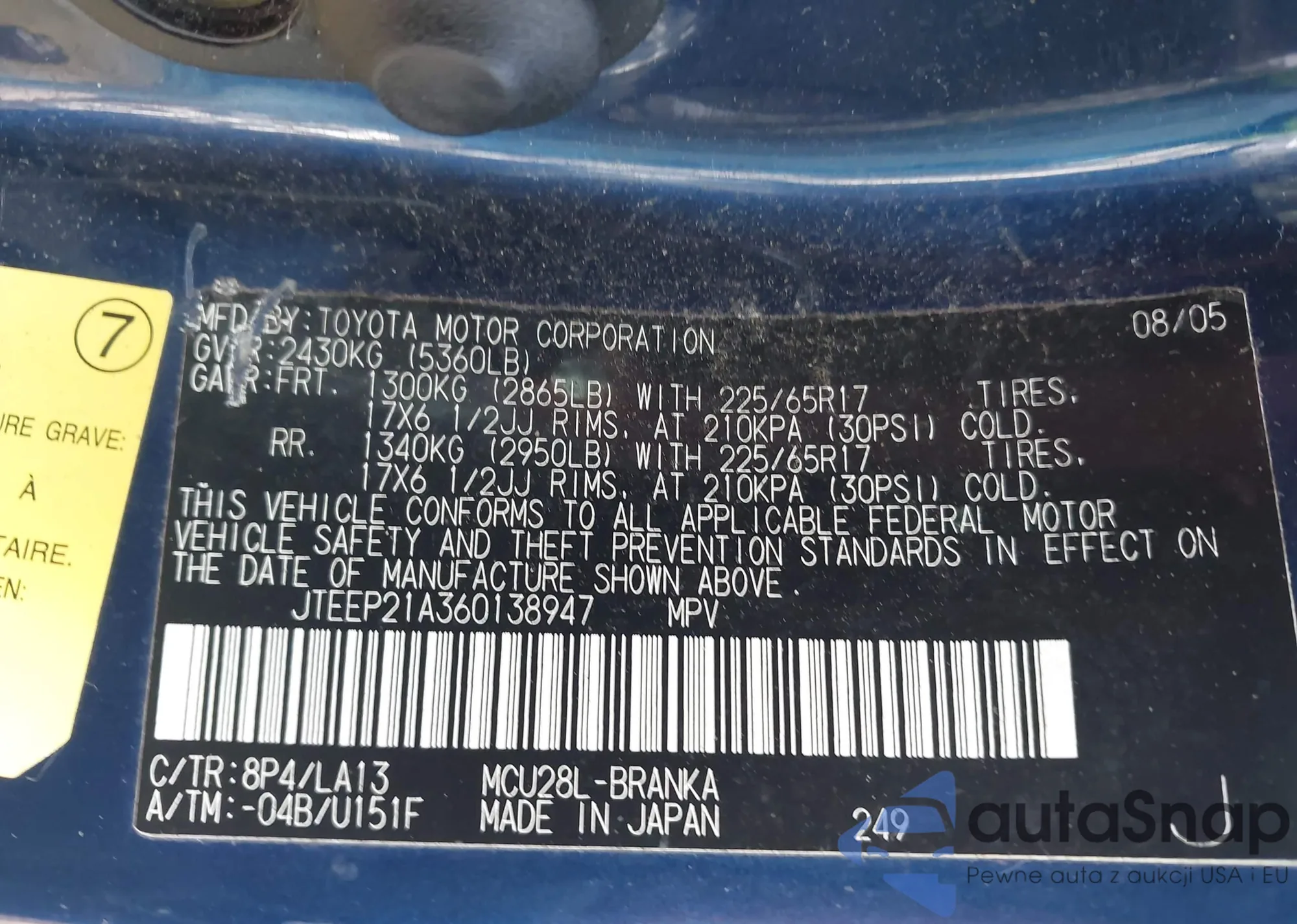 VIN: JTEEP21A360138947