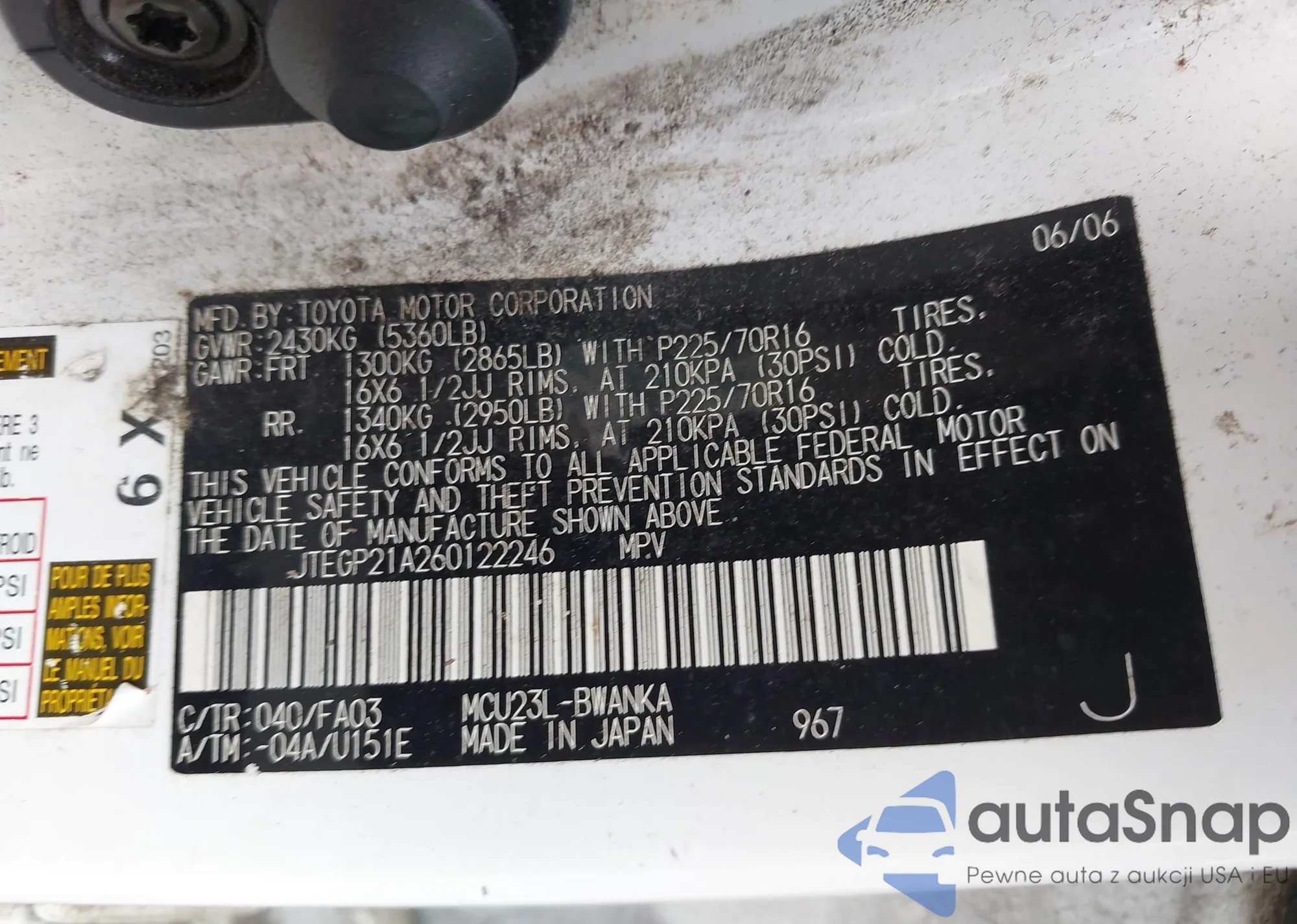 VIN: JTEGP21A260122246