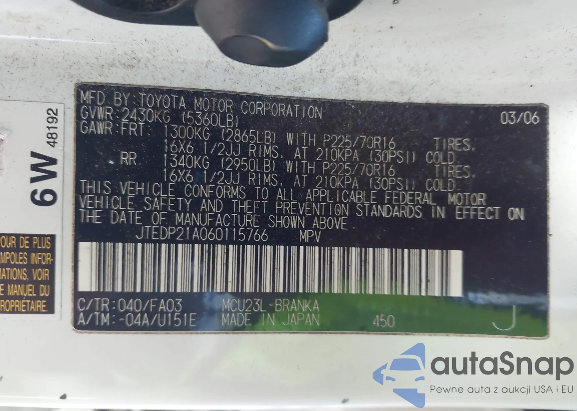 JTEDP21A060115766 IAAI