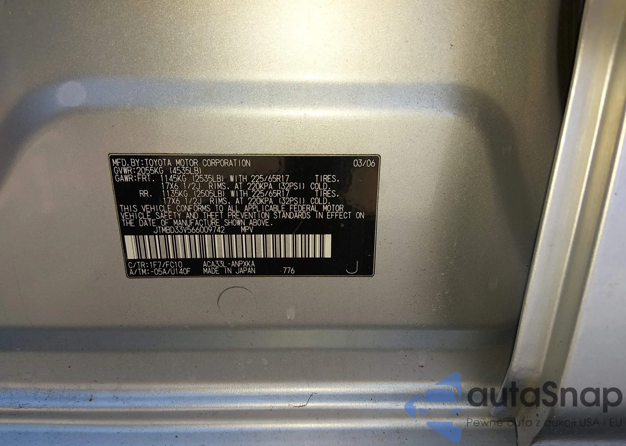 • VIN: JTMBD33V566009742