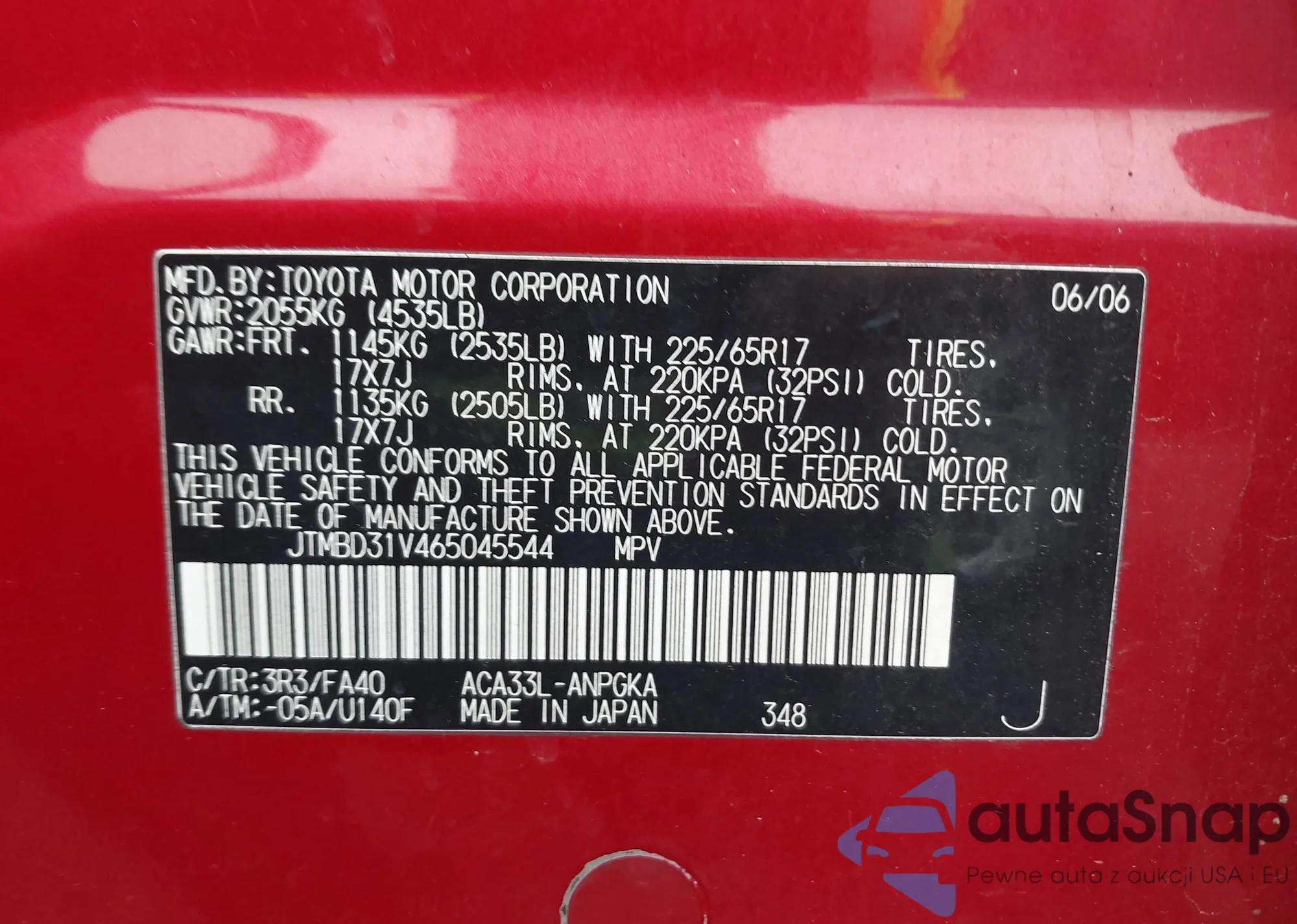 VIN: JTMBD31V465045544