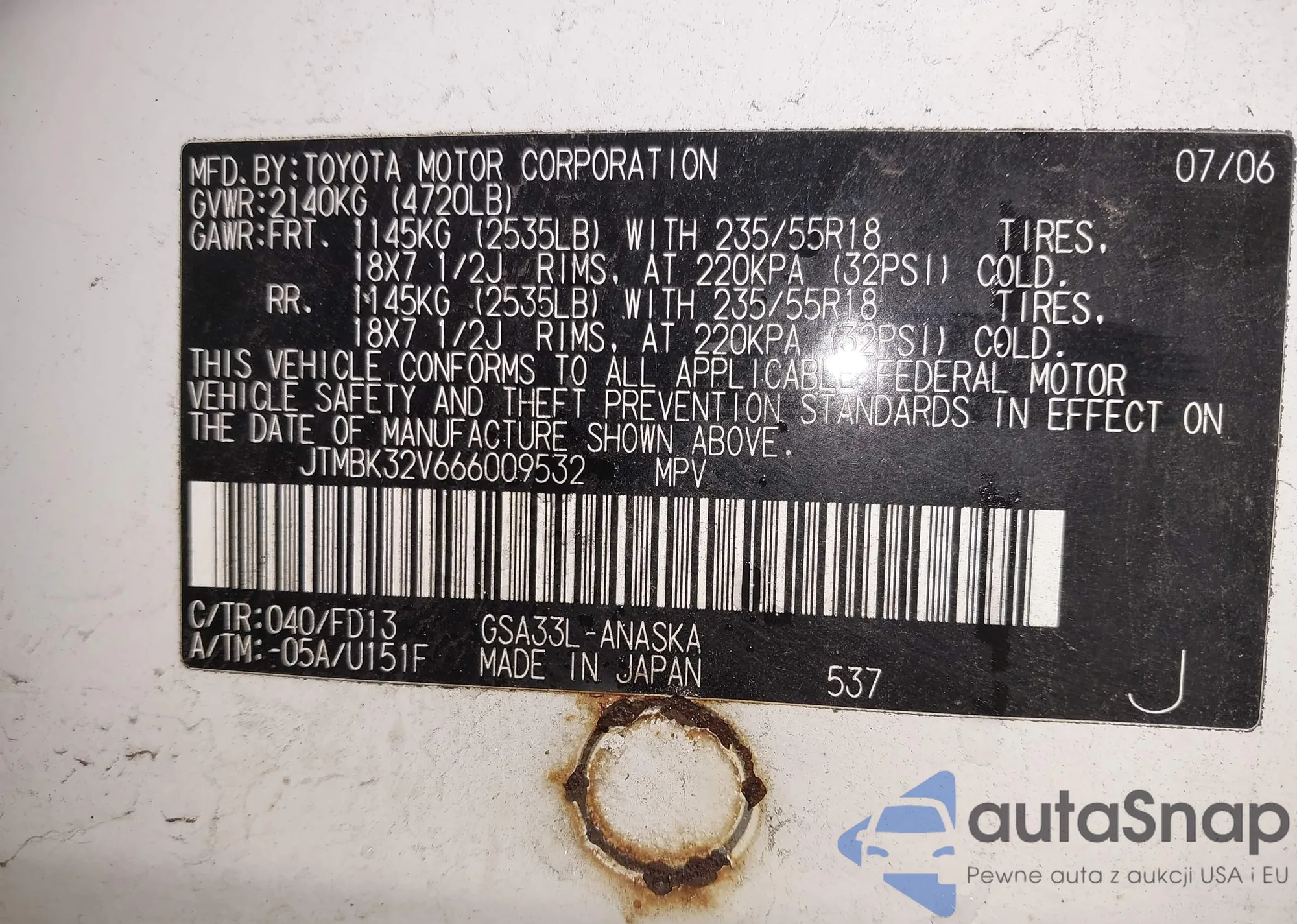 VIN: JTMBK32V666009532
